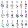 S925 Серебряный темно-фиолетовый цветок анютины глазки висячие подвески подходят для оригинального очарования DIY ювелирные изделия для женщин подарки на день рождения