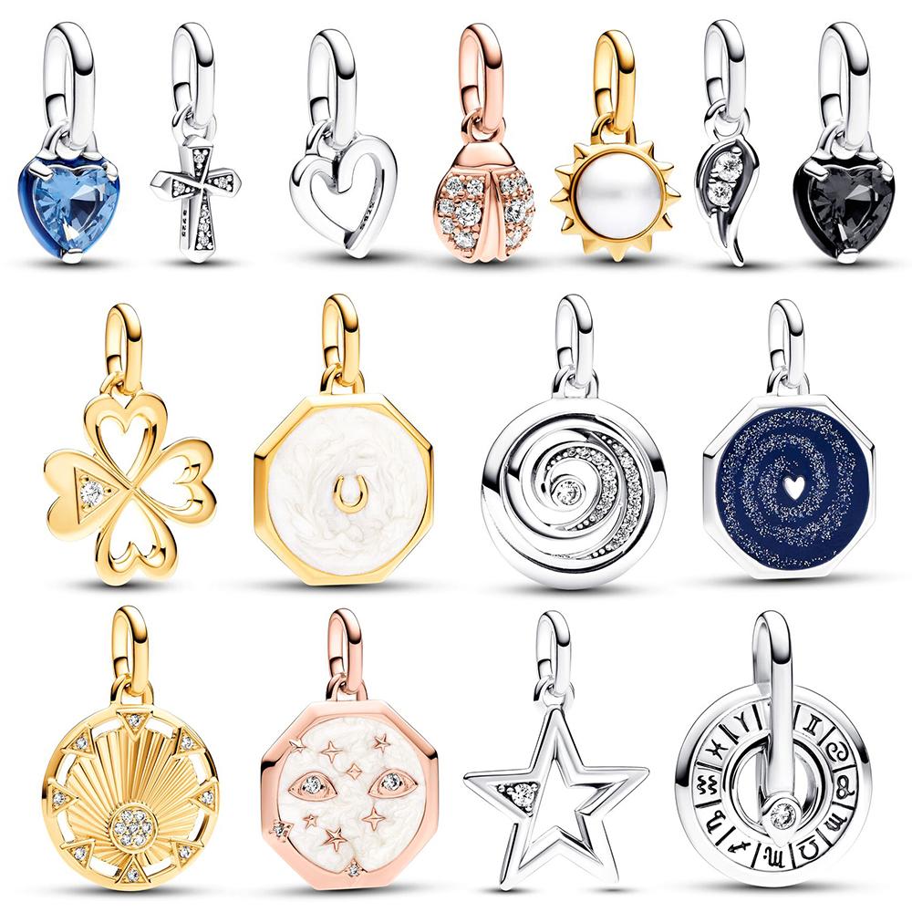 S925 Сверкающее Серебро Сверкающая Звезда ME Галактика Сердце Медальон Синий Черный Чакра Сердце Крест Мини-Висячий Подвеска Подходит Подарки