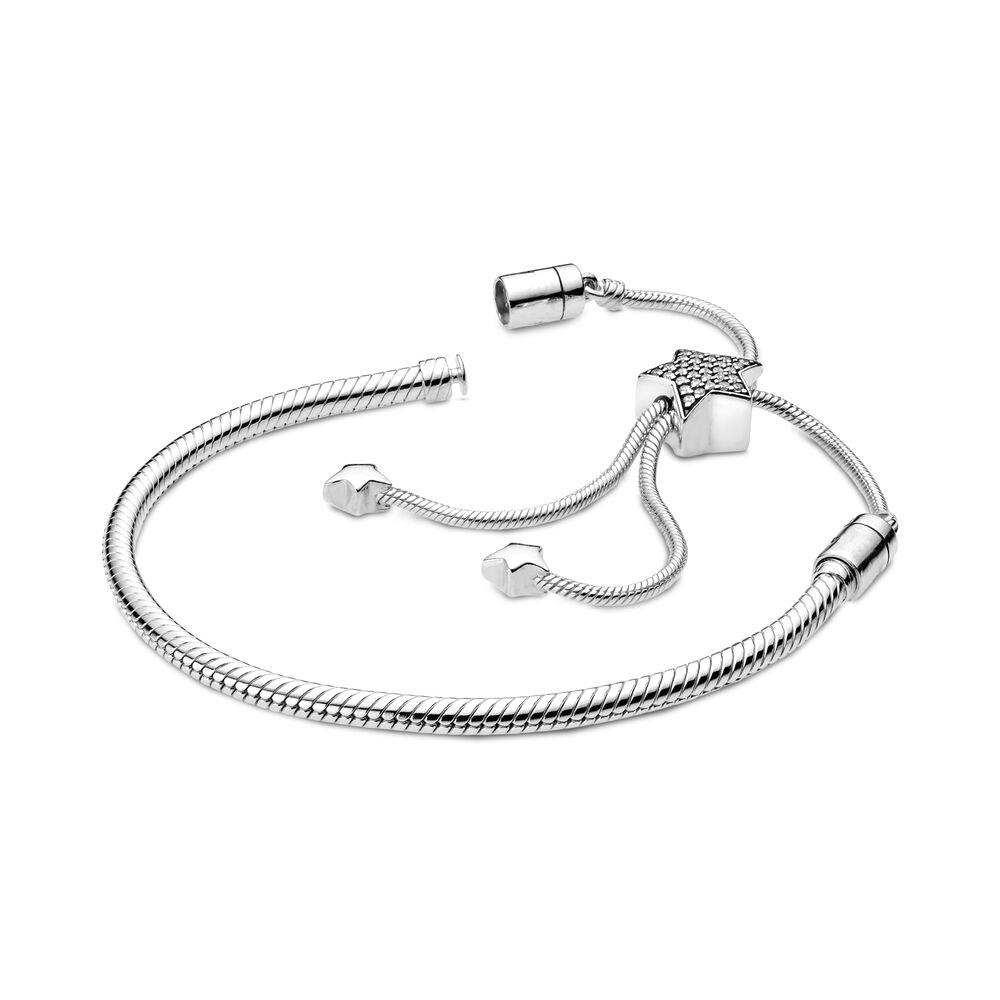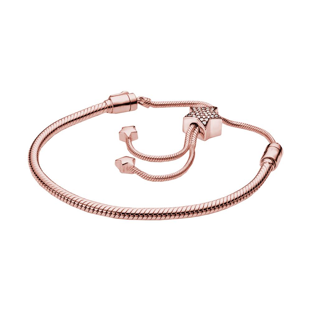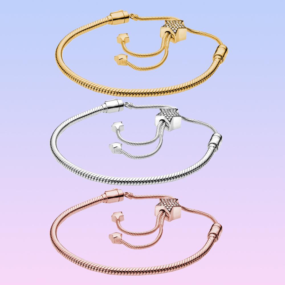 S925 Стерлингового Серебра Моменты Паве Звезда Застежка Змеиная Цепочка-Слайдер Браслет Подходит Оригинальные Шармы Изготовление Бусин для Женщин Подарки