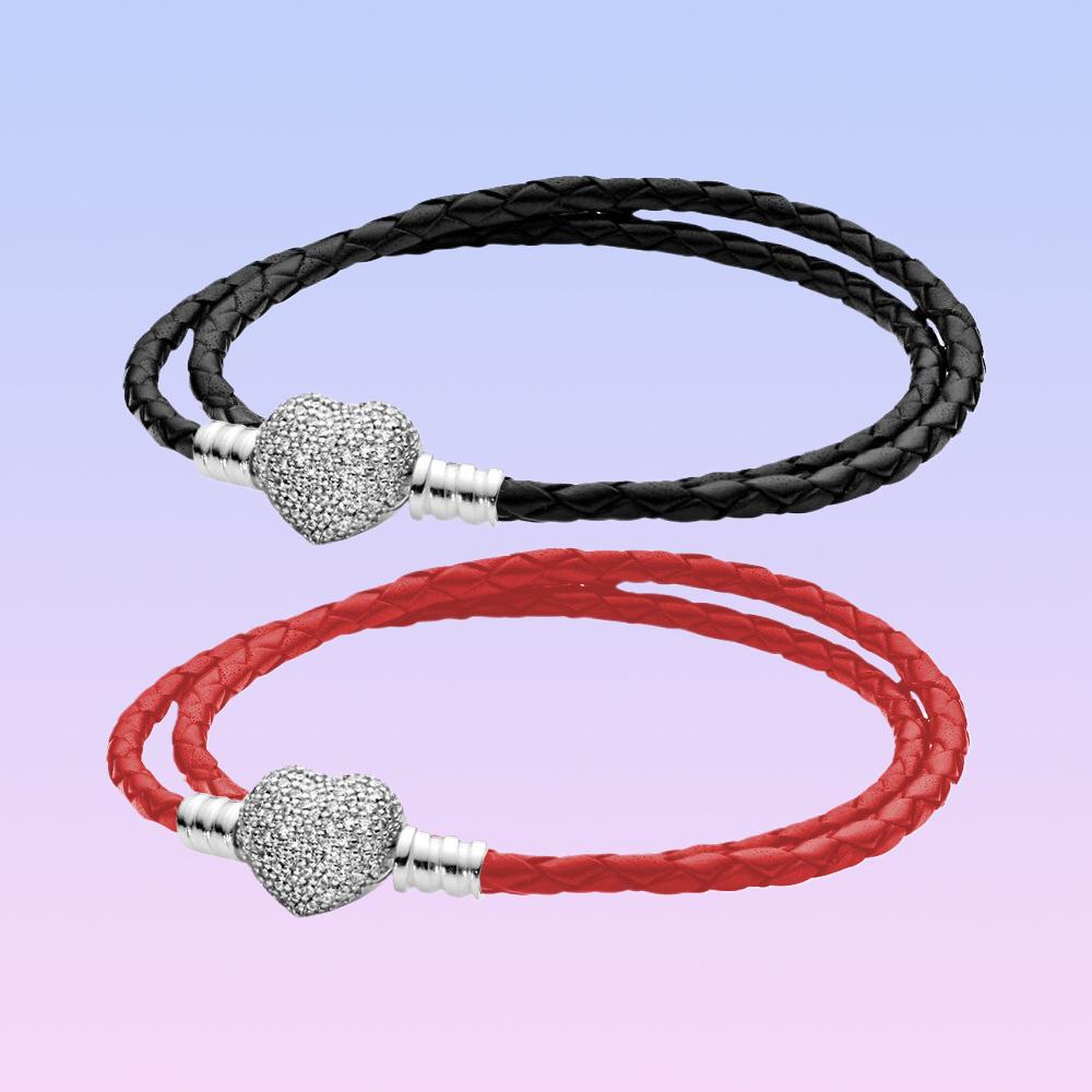 S925 Серебряный двойной браслет из плетеной кожи с сердечком, подходит для оригинальных подвесок для женщин, изготовление ювелирных изделий