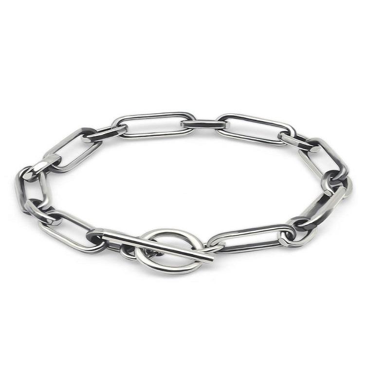 S925 Серебряные ювелирные изделия Нишевый дизайн Круг Япония и Южная Корея Простой бренд Tide Хип-хоп Ретро серебряный браслет Мужской OT Пряжка Женские модели