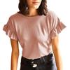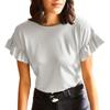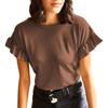 Женская футболка с коротким рукавом, повседневные базовые футболки, летние однотонные вязаные футболки свободного покроя с рюшами и круглым вырезом, блузки — купить товар онлайн с бесплатной доставкой до всему миру!