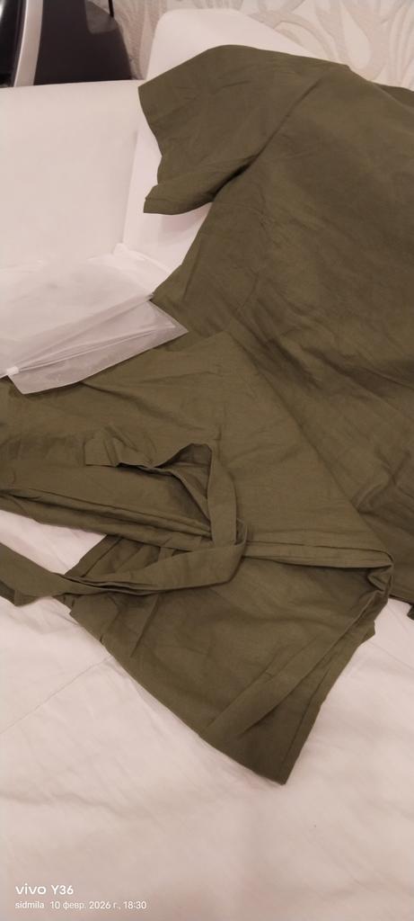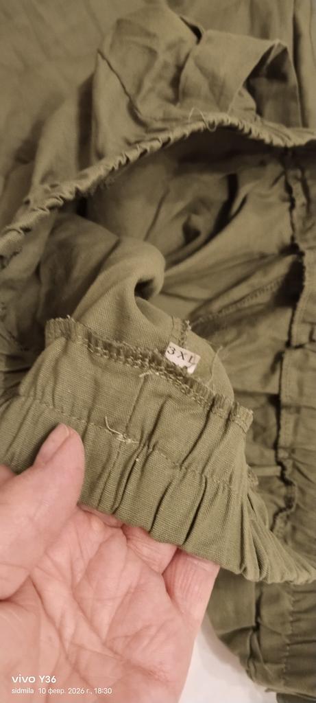 Начну с того, что за цену в 1000 р. ничего лучше не купить. Поэтому и ткань и пошив именно на 1000 и не больше. Какая то мешковина, хоть и тонкая, но в ней оказалось жарко почему то. Сшито аккуратно. Фасон очень простой из серии что раньше на уроках труда сами кроили. Сегодня в первый раз одевала. Поняла, что на мой русский размер 50 ХХХL велик. Выражается это в том, что блузка смотрится уж очень мешковато и постоянно задирается на груди, приходится одергивать. Не критично, кто то скажет что оверсайз в почёте, но и брючки бы тоже не мешало бы взять поменьше. Смотрелось бы пособранее. Смело на 50 размер можно брать 2 икса. Цвет брала хакки, но это конечно что-то ближе к грязному бежевому. Стирается хорошо, не садиться. Гладилось с отпариванием. Для прогулок с собаками пойдет, но лучше добавить немного денег и купить то, что действительно будет радовать.