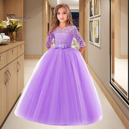 Представляем потрясающее платье принцессы для девочек! Платье из высококачественного полиэстера не только красивое, но и удобное в носке.. Элегантный дизайн включает милое длинное выпускное платье с круглым вырезом, завышенной талией и полурукавами.. Вставки из цветочного кружева с вырезом до пола и бант на талии придают нотку изысканности.. Потайная застежка-молния сзади придает ему современный вневременной вид, а ультра-классический полупрозрачный кружевной топ в форме сердца придает романтическую атмосферу любому случаю.