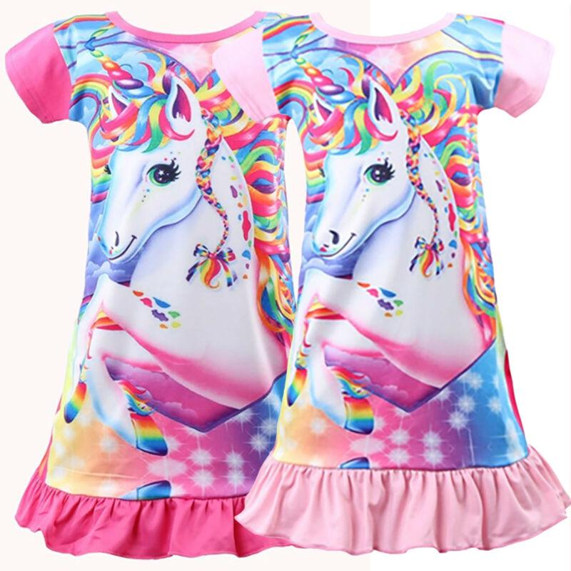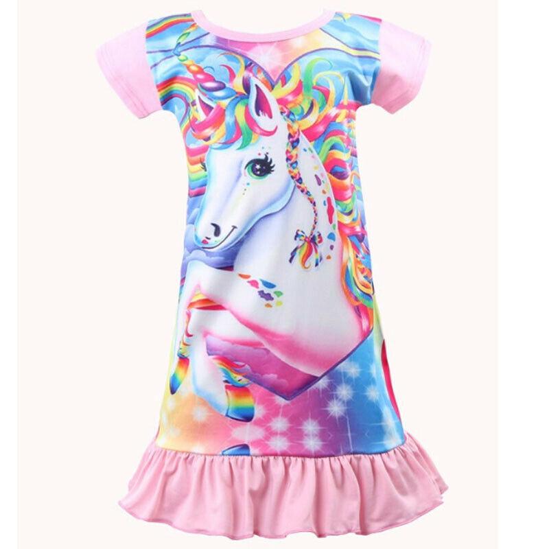 Платье с принтом единорога для девочек, плиссированные платья с короткими рукавами и круглым вырезом для девочек, летние вечерние платья для девочек