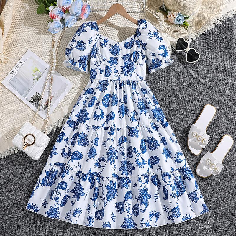 Платья для девочек от 6 до 12 лет+, летние детские новые модные супер красивые платья принцессы с объемными рукавами и принтом — купить товар онлайн с бесплатной доставкой по всему миру!