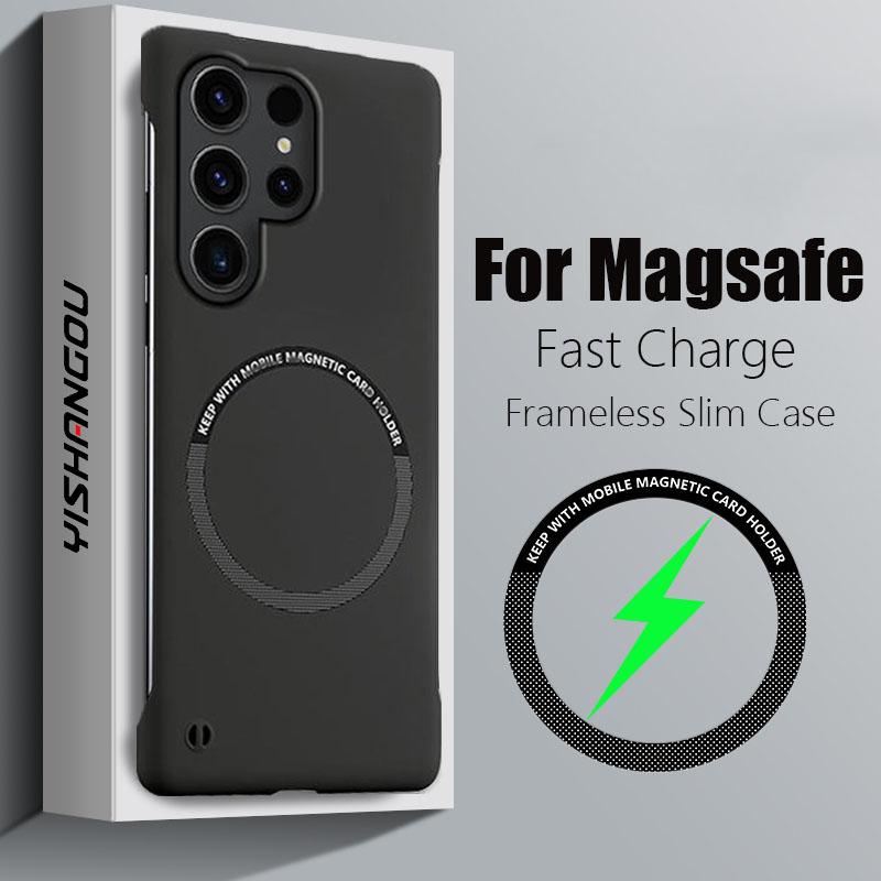 Тонкий безрамочный магнитный чехол Magsafe для Samsung Galaxy S23 Ultra S22 S24 Ultra Coque, роскошный жесткий чехол с беспроводной зарядкой