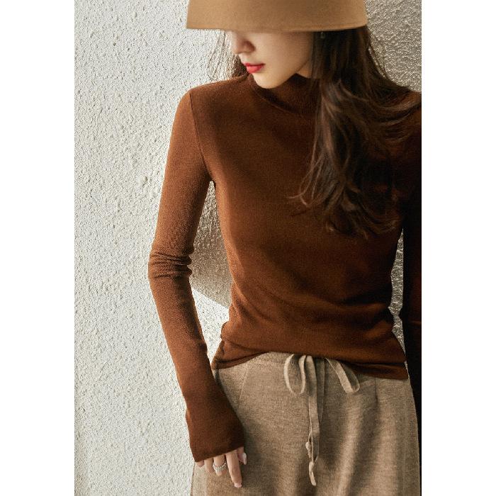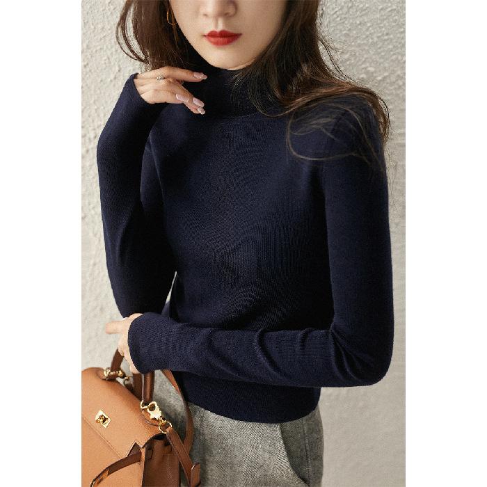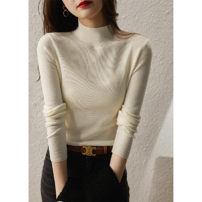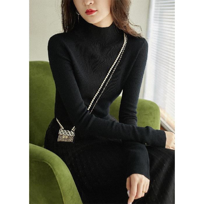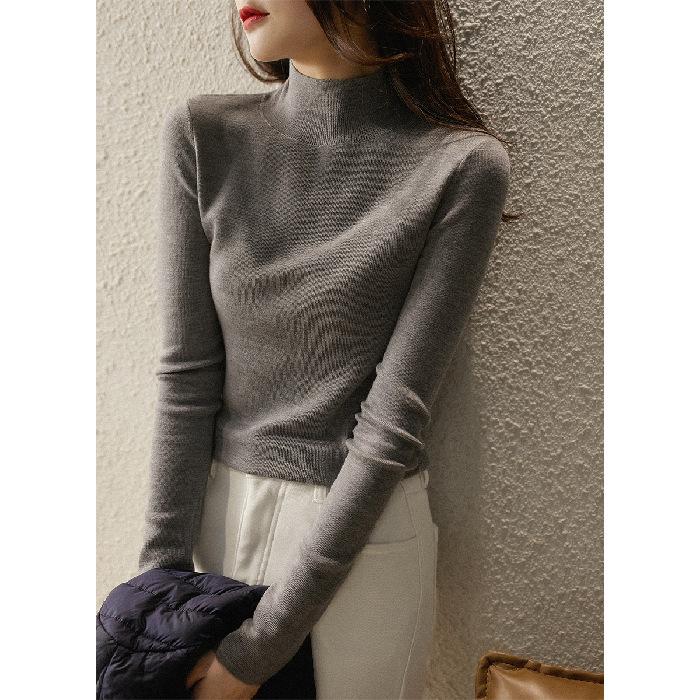 2024 Новые осенние и зимние топы, трикотажные женские футболки с длинными рукавами и полуводолазкой, большие размеры, нижняя рубашка в корейском стиле, однотонный свитер