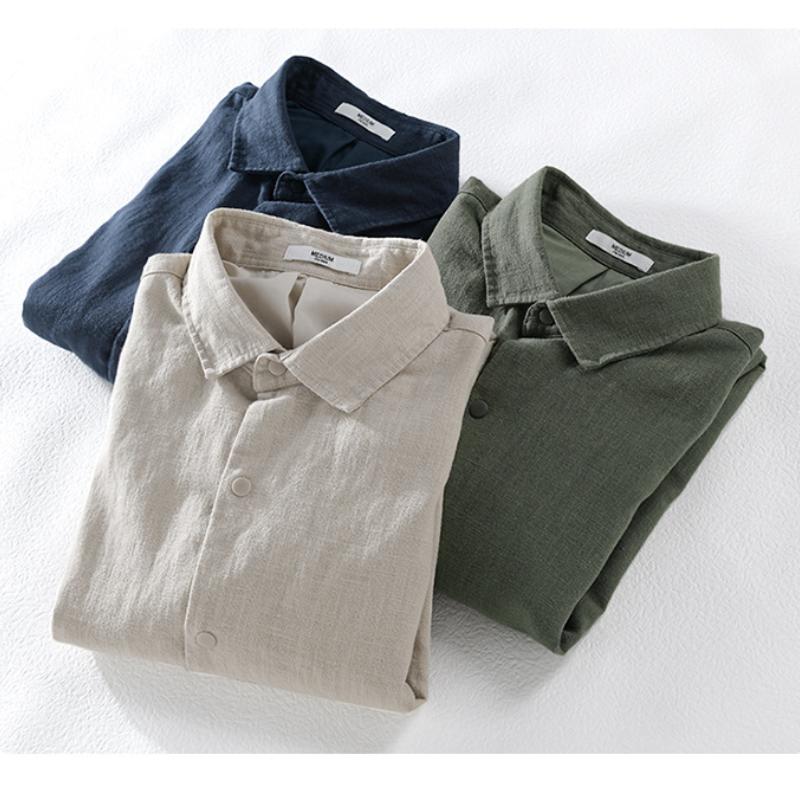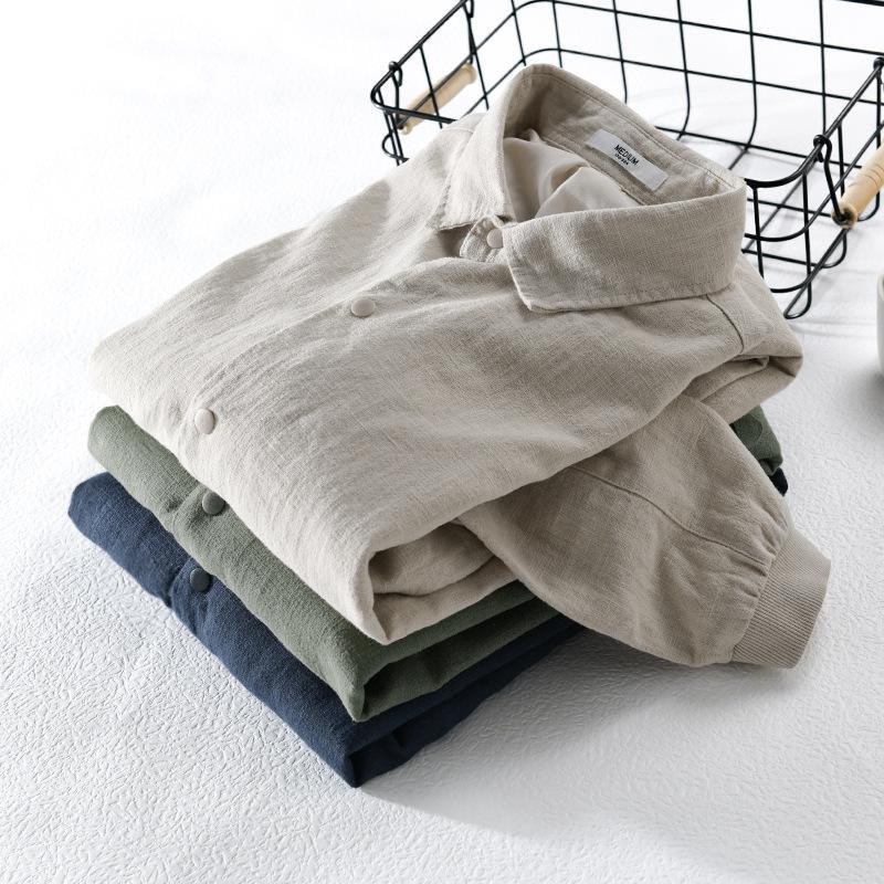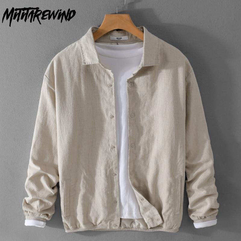 Весенние и летние хлопковые льняные куртки для мужчин, повседневное пальто с воротником-лацканом, однотонная куртка на пуговицах, простая мужская одежда