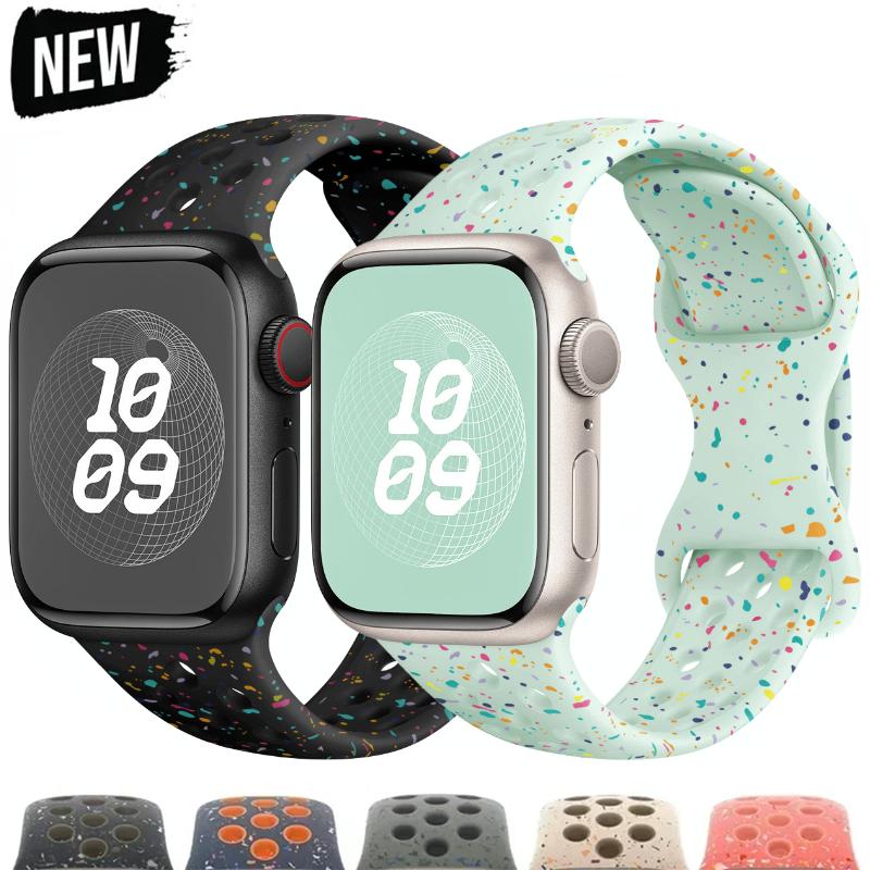 Оригинальный спортивный ремешок для Apple Watch Ultra 2, 49 мм, 45 мм, 44 мм, 42 мм, 38 мм, резиновая лента с цветными частицами для IWatch 9, 8, 7, 6, 5 SE