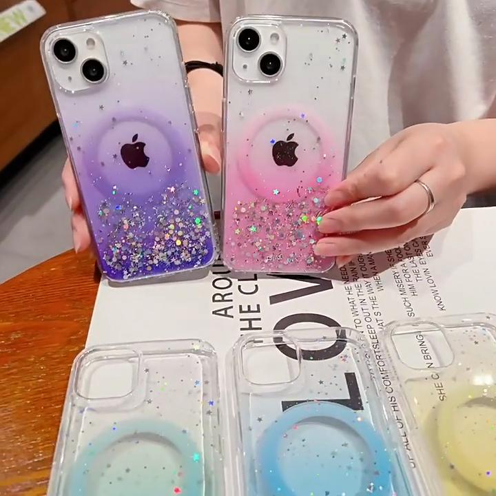 Роскошный блестящий прозрачный чехол Magsafe с беспроводной зарядкой для iPhone 15 14 13 12 11 Pro Max Samsung S24 Ultra S23 Plus S22 Soft Silico — купить товар онлайн с бесплатной доставкой по всему миру!