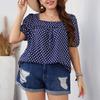 Летние женские свободные повседневные топы в горошек размера плюс, женские шифоновые футболки с круглым вырезом и короткими рукавами с решетчатым принтом для мамы