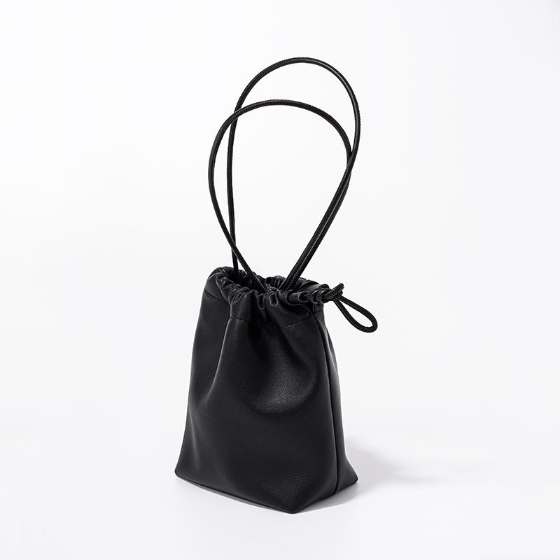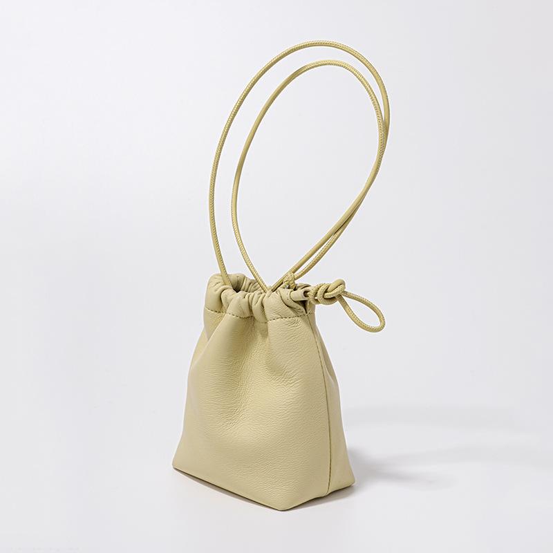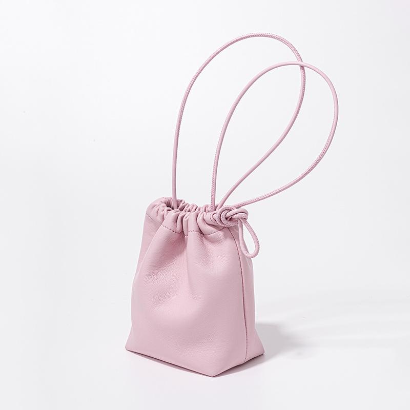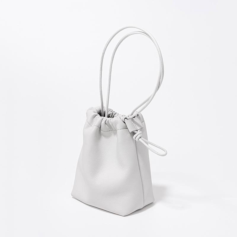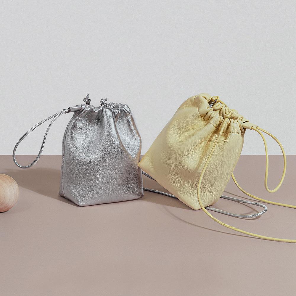 Мини-сумка Lucky из овечьей кожи в корейском стиле, сумка-ведро из мягкой кожи со складками и ручкой на шнурке, новая серебряная кожаная сумка через плечо