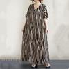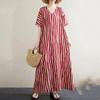 Новое хлопковое винтажное платье в полоску с коротким рукавом больших размеров для женщин, повседневное свободное длинное летнее платье