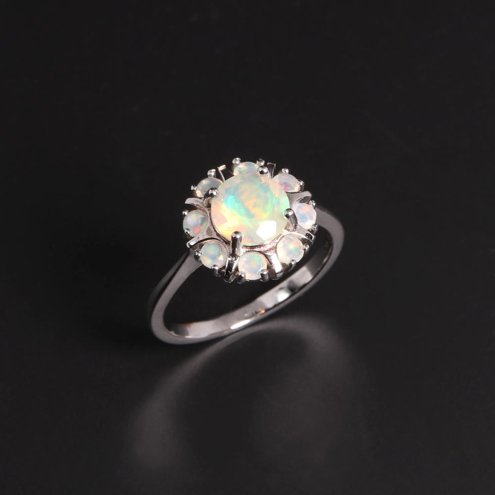 Великолепное кольцо в форме цветка с натуральным опалом и драгоценным камнем S925, серебро, элегантные благородные драгоценные камни, изысканные ювелирные изделия, подарок для женщин и девочек