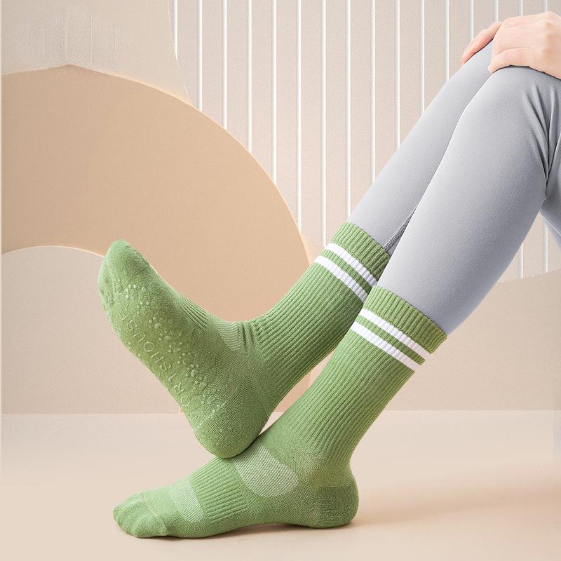 Женские носки для йоги со средней посадкой, размеры 35–39, нескользящие носки для пилатеса, спортивные носки для прыжков на подошве, гимнастики