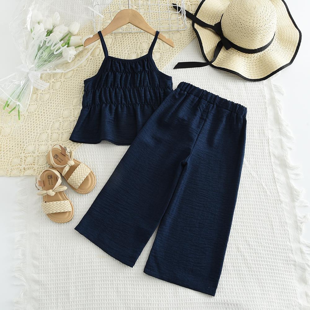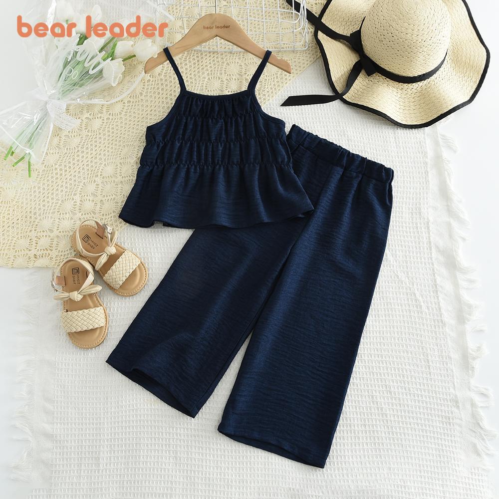 Bear Leader, однотонный летний модный плиссированный топ с ремешками для девочек и широкие брюки, повседневный комплект детской одежды из 2 предметов, AZ4416