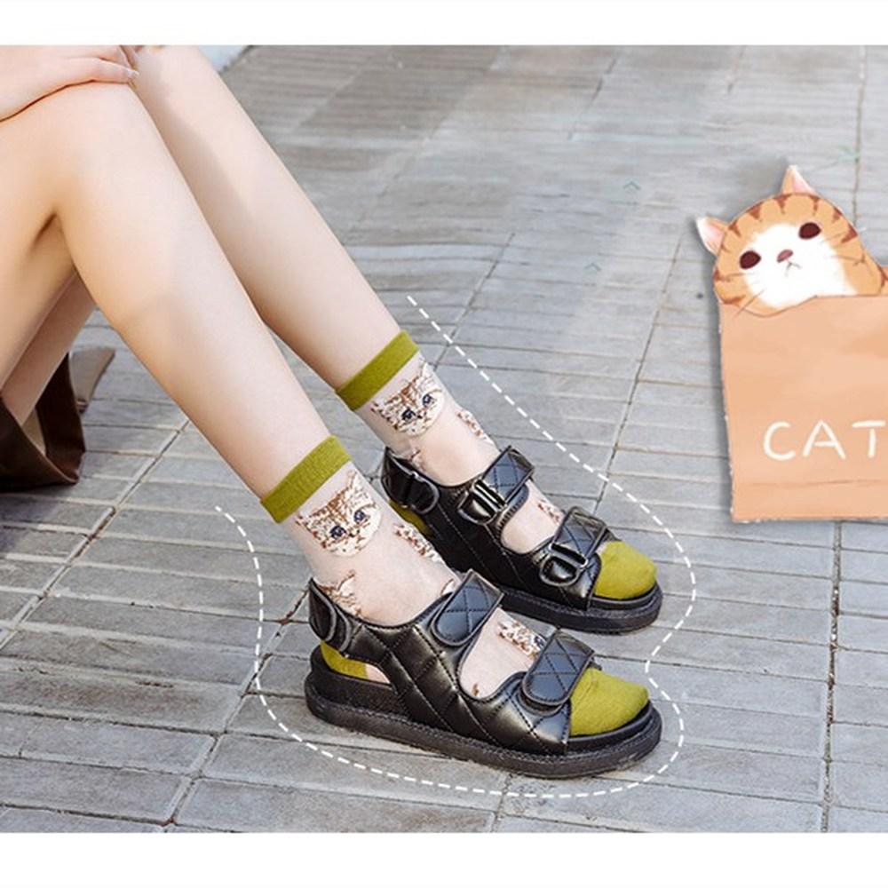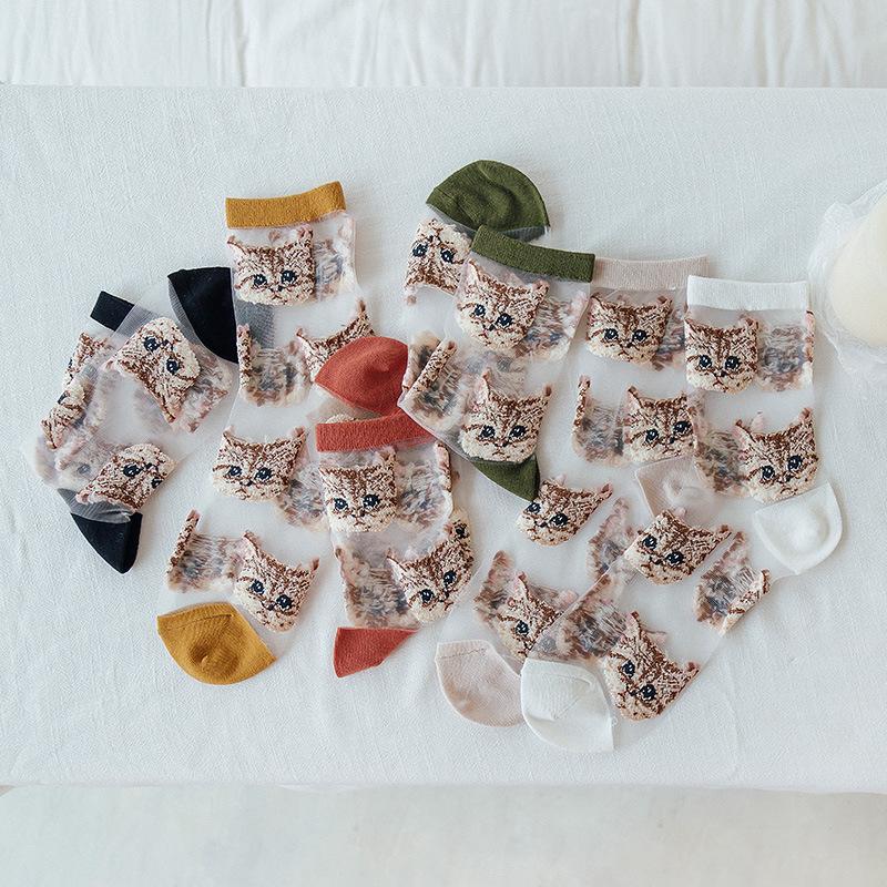 Кружевные короткие носки с милым мультяшным котом и принтом, женские летние ультратонкие прозрачные шелковые носки с кристаллами, повседневные дышащие эластичные носки