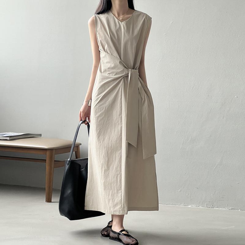 Johnature Повседневное корейское платье без рукавов с поясом на бретельках, летнее дизайнерское женское платье трапециевидной формы во французском стиле с перерывом на чай
