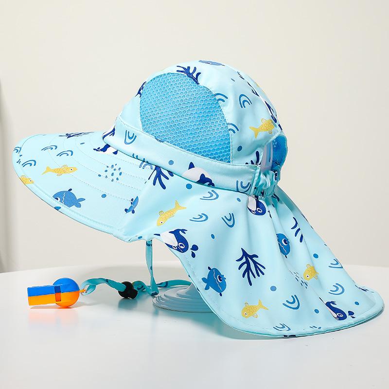 Летняя детская шляпа от солнца, кепка со свистком для девочек и мальчиков, уличная защита от УФ-защиты для ушей, детские пляжные кепки