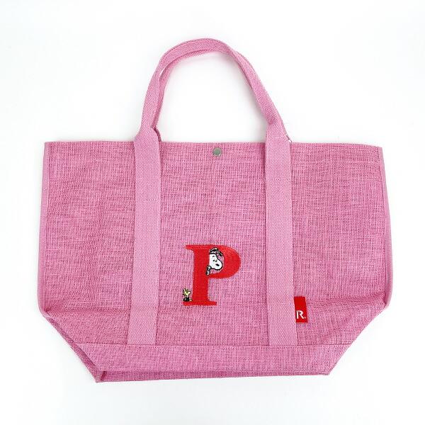 Начальная сумка Snoopy из джута <P> Розовый натуральный материал SNOOPY