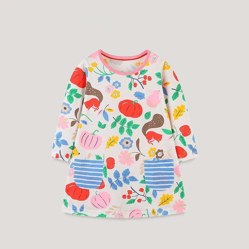 Одежда для детей от 2 до 7 лет, платье с длинными рукавами для девочек, трикотажные хлопковые платья принцессы на весну и осень с круглым вырезом и рисунком для девочек