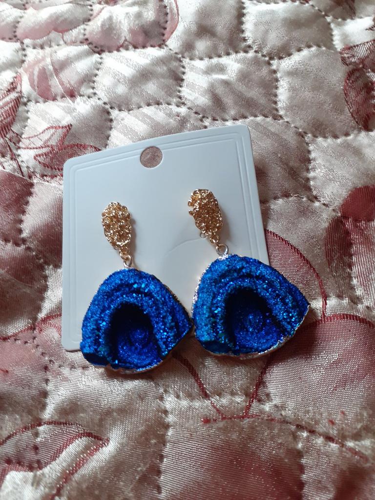Очень интересная бижутерия. Сделано под друзу натурального камня. Даже местами поблёскивают. Серьги лёгкие, не оттягивают мочку уха. Жаль, что застёжка 'гвоздик', быстро потеряются.