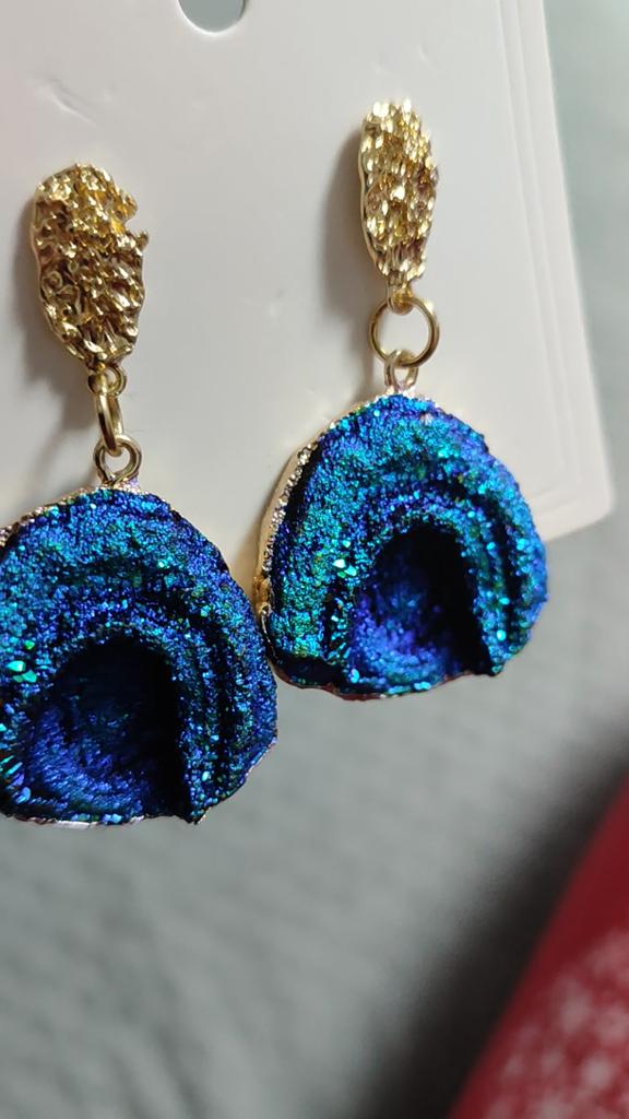 Очень интересные и необычные серьги. Не подо всё. Ярко-синие с зеленоватым подтоном. Кажутся очень тяжёлыми, но на самом деле достаточно лёгкие.