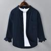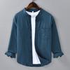 Рубашки из хлопка и льна простого стиля для мужчин Весна Лето Повседневная рубашка с длинным рукавом Карман Воротник-стойка Однотонная рубашка Пляжная Дышащая Мужская Топ