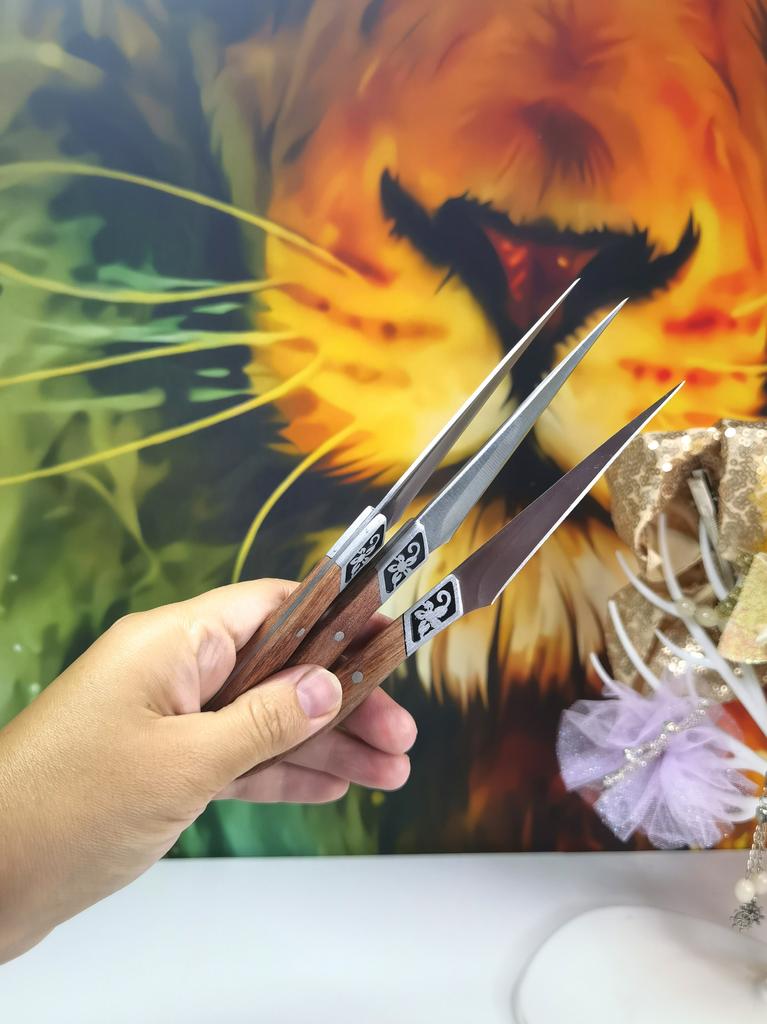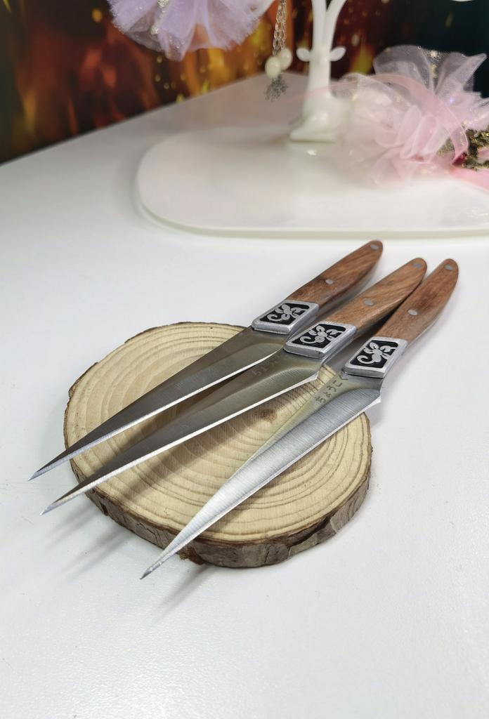 Комплект ножей В комплекте 3 ножа Ножи острые, с тонким лезвием Острие очень тонкое, как игла По весу лёгкие На промофото указано, что ножи должны быть разных видов, мне пришли все одинаковые К качеству претензий нет 👌