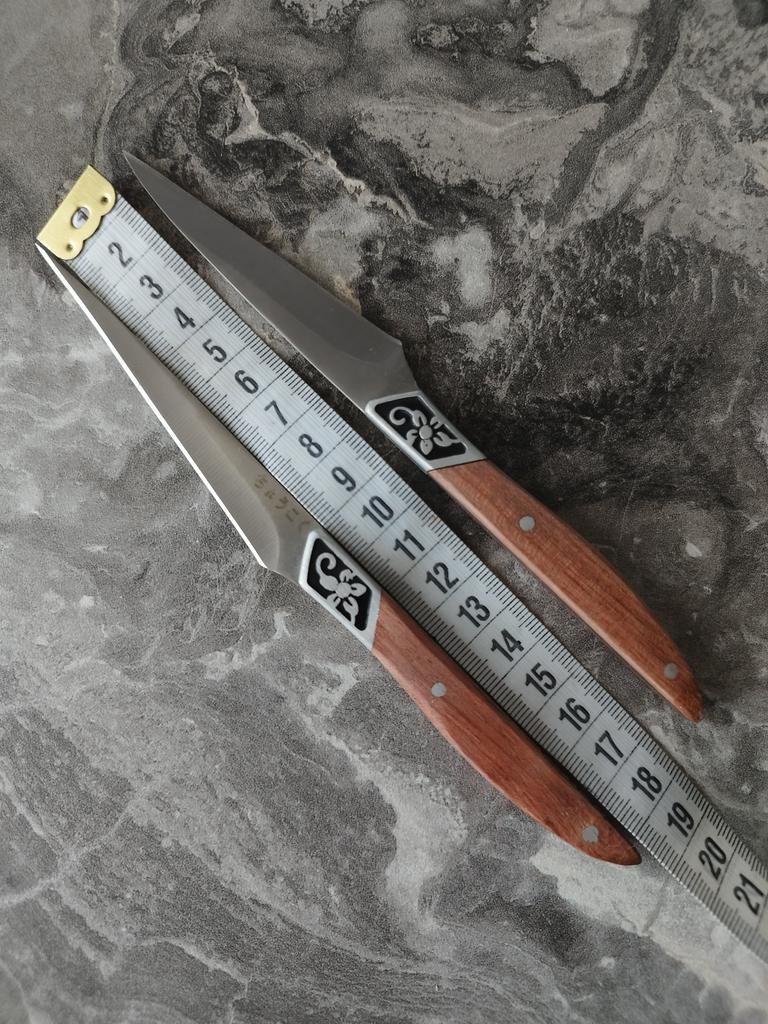 Хорошие ножи. Единственный минус - не обработанные рукояти. Но я подшлифовала и намазала специальным маслом. Лежат, пухнут.