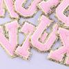 Алфавит, 26 букв, блестки, синель, розовая вышитая аппликация, нашивка для одежды, сумки, куртка, шляпа, декор