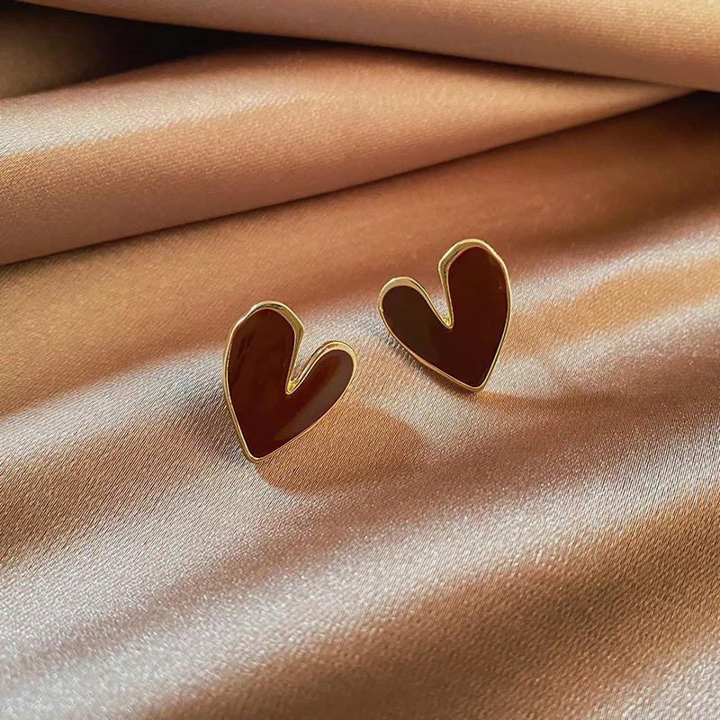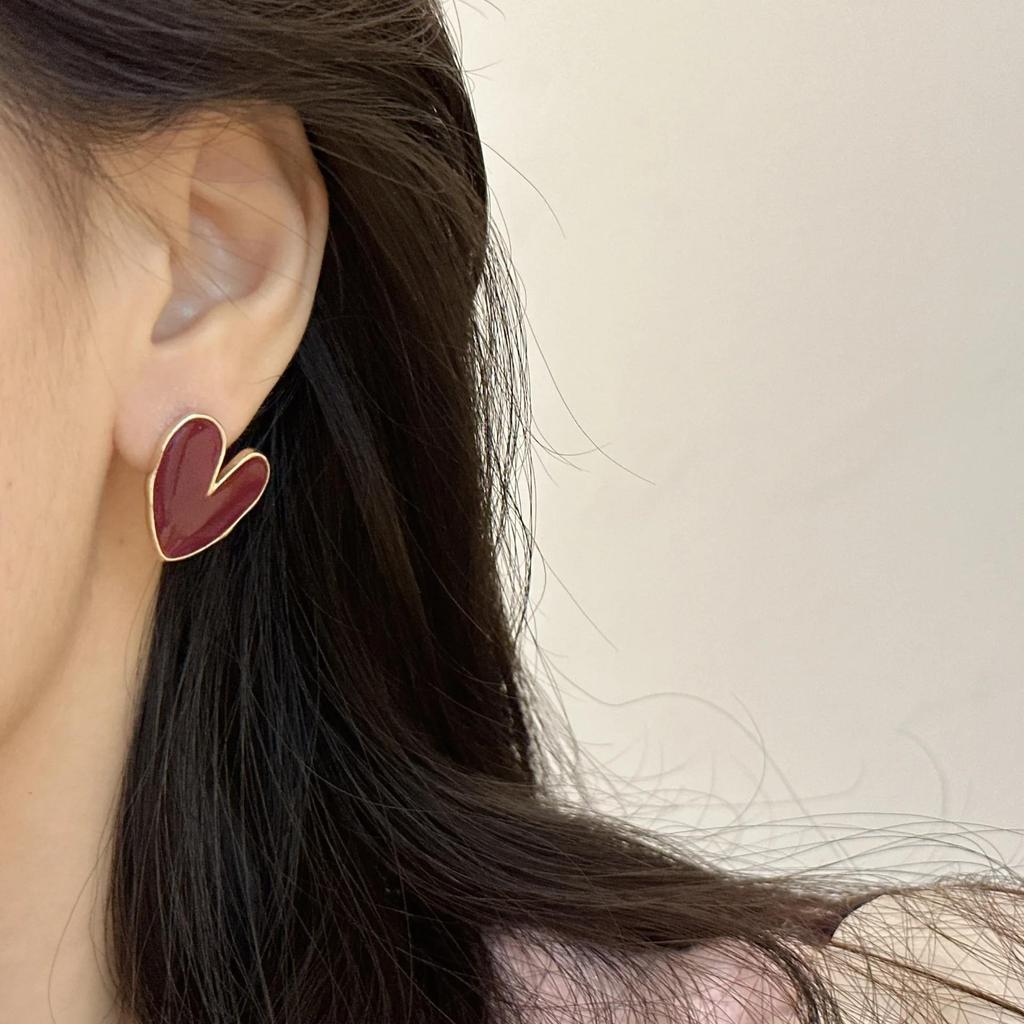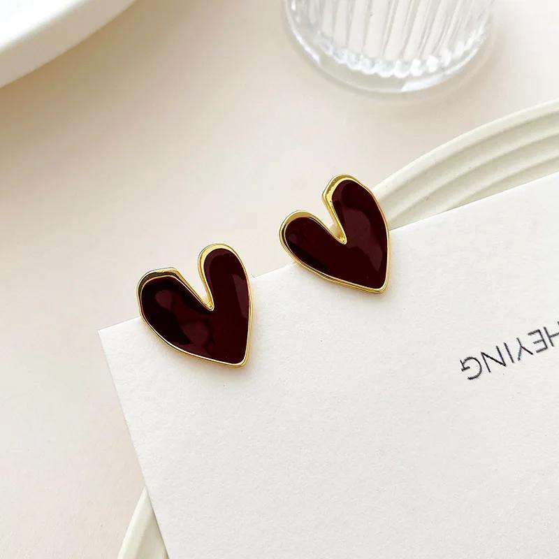 Серьги-гвоздики в форме винно-красного сердца, Нерегулярные корейские модные женские маленькие серьги с эмалью Sweet Love