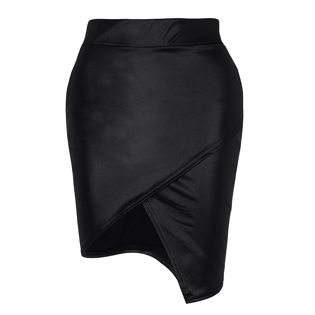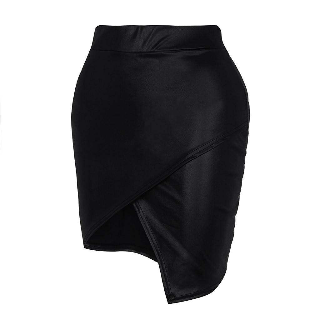 Модная женская черная крестовая открытая вилка, короткая повседневная мини-юбка из искусственной кожи