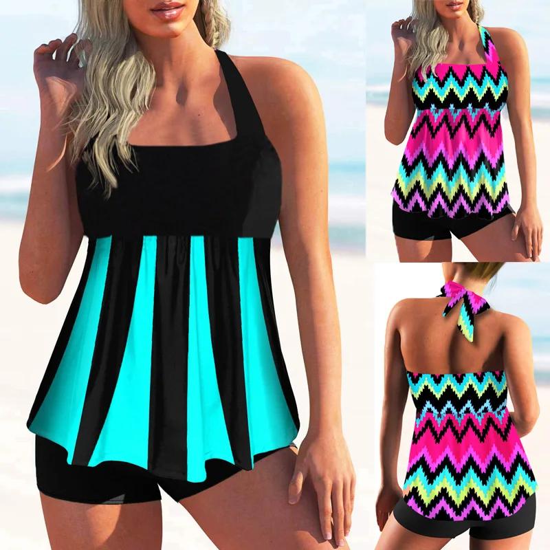 2024 летние новые модные купальники с принтом, женские сексуальные купальники с высокой талией, женские купальники из двух частей, танкини, купальники, пляжная одежда