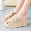 Тапочки на высоком каблуке. Женские летние толстые подошвы на наклонном каблуке. Модная верхняя одежда. Сандалии принцессы с увеличением ветра. Нескользящие дышащие домашние тапочки.