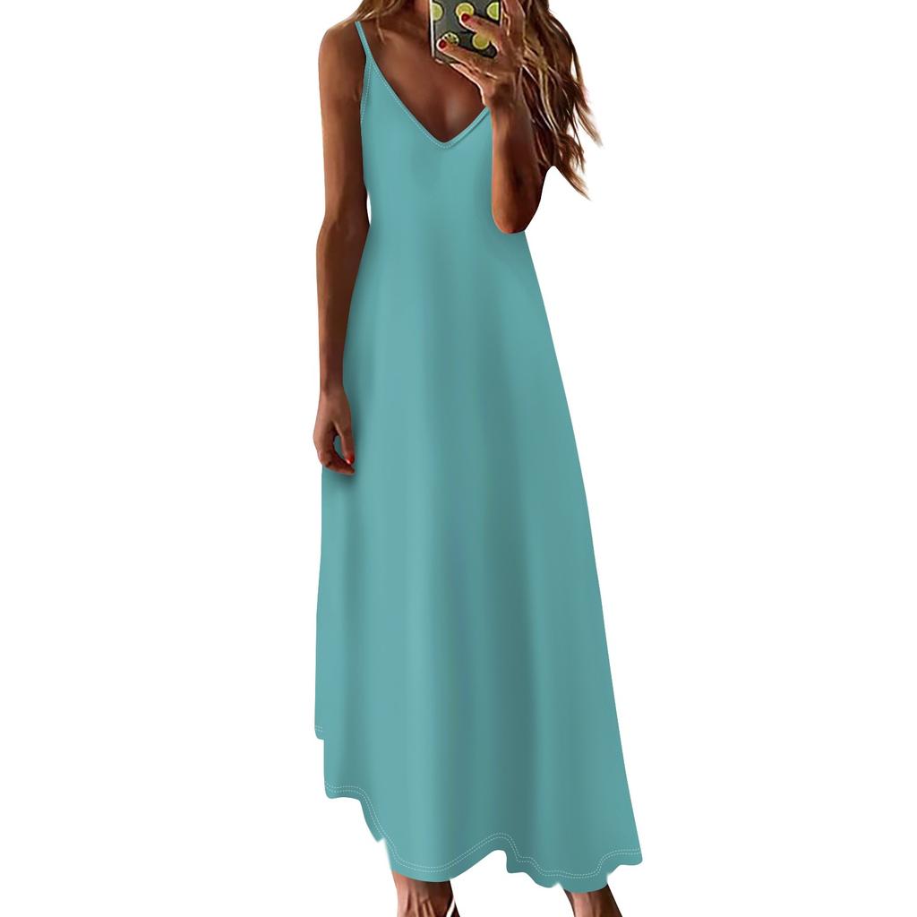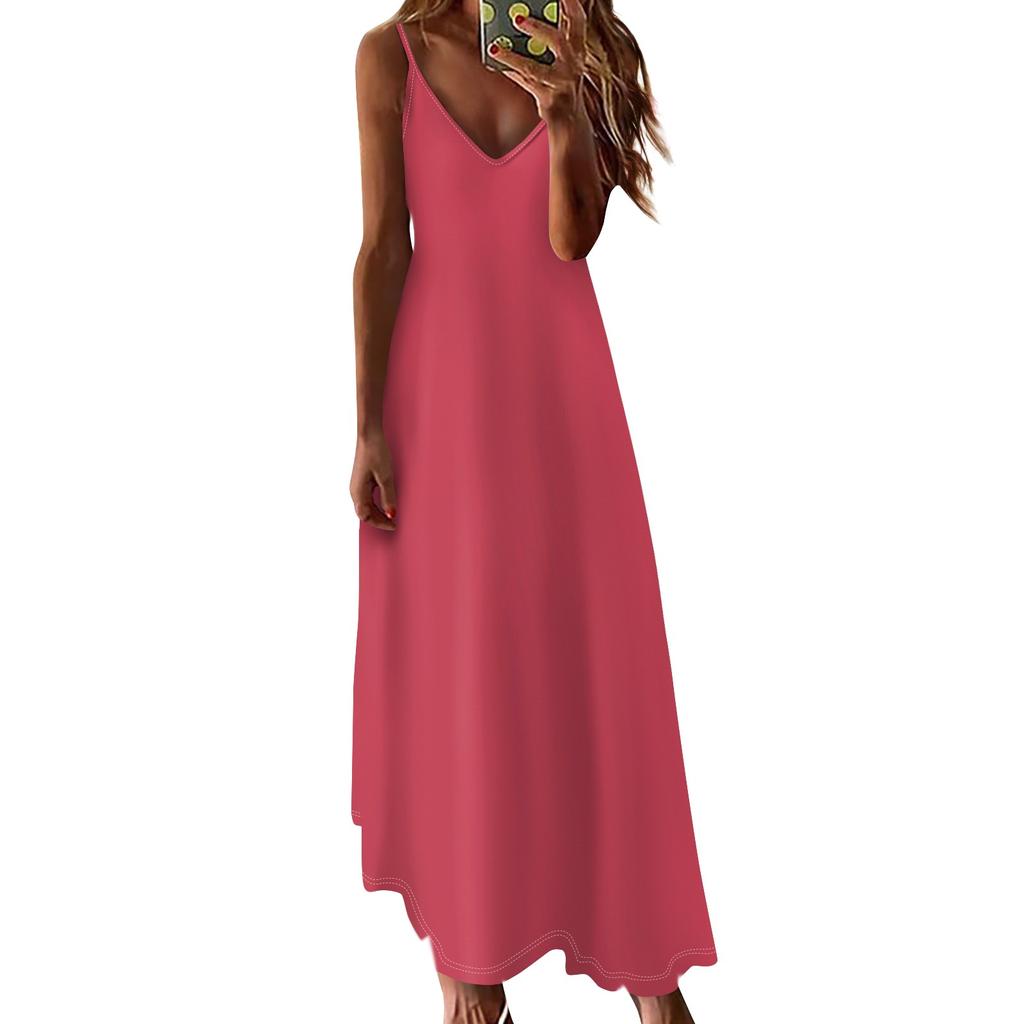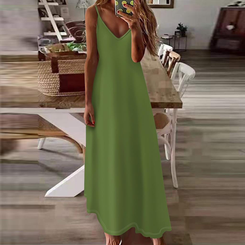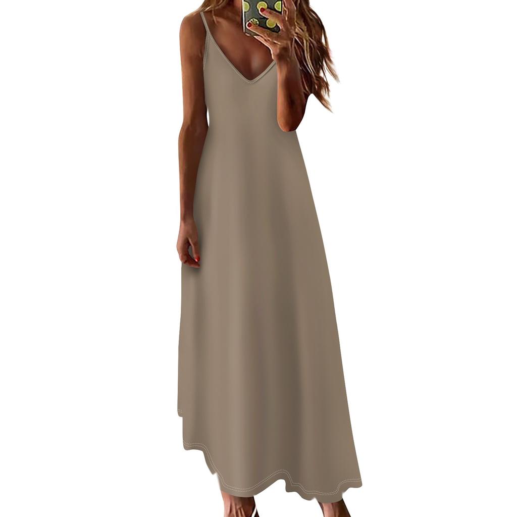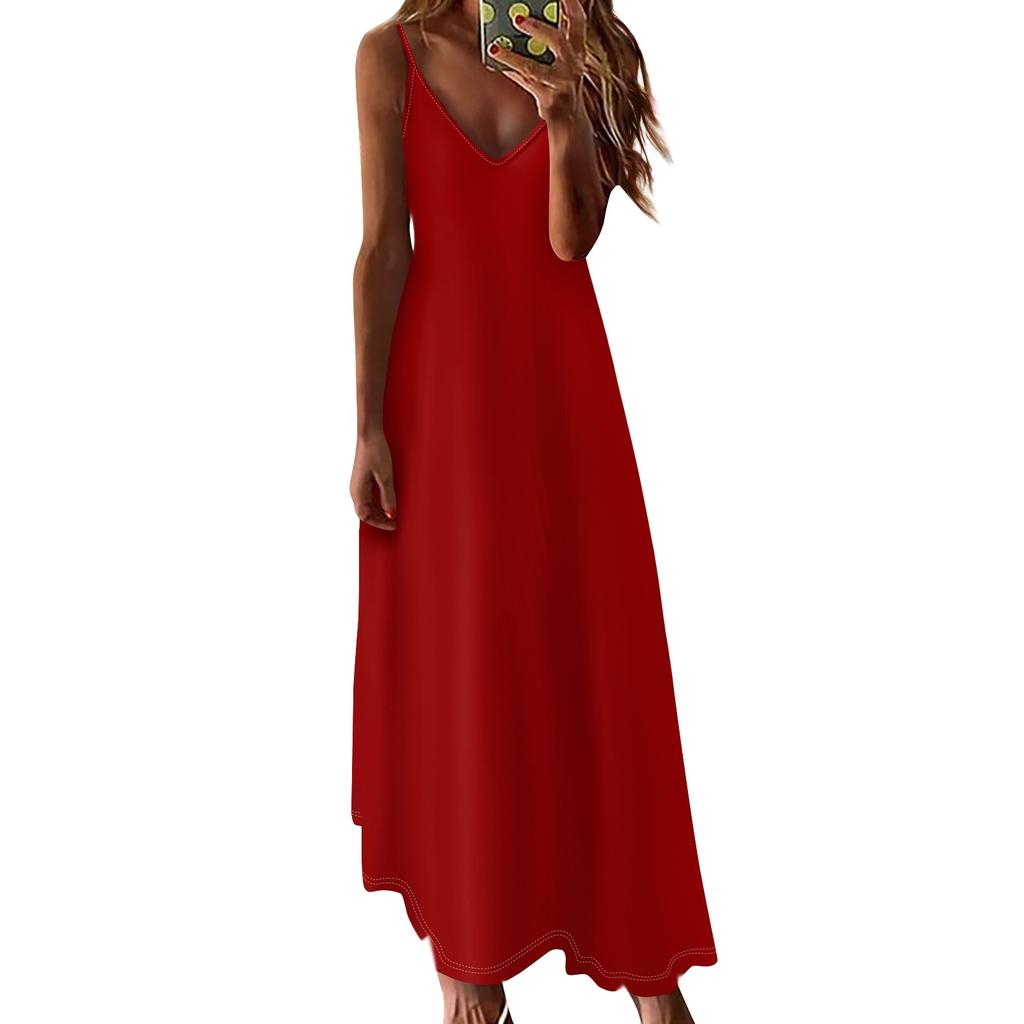 Женское летнее повседневное модное однотонное длинное платье без рукавов с V-образным вырезом, повседневные платья
