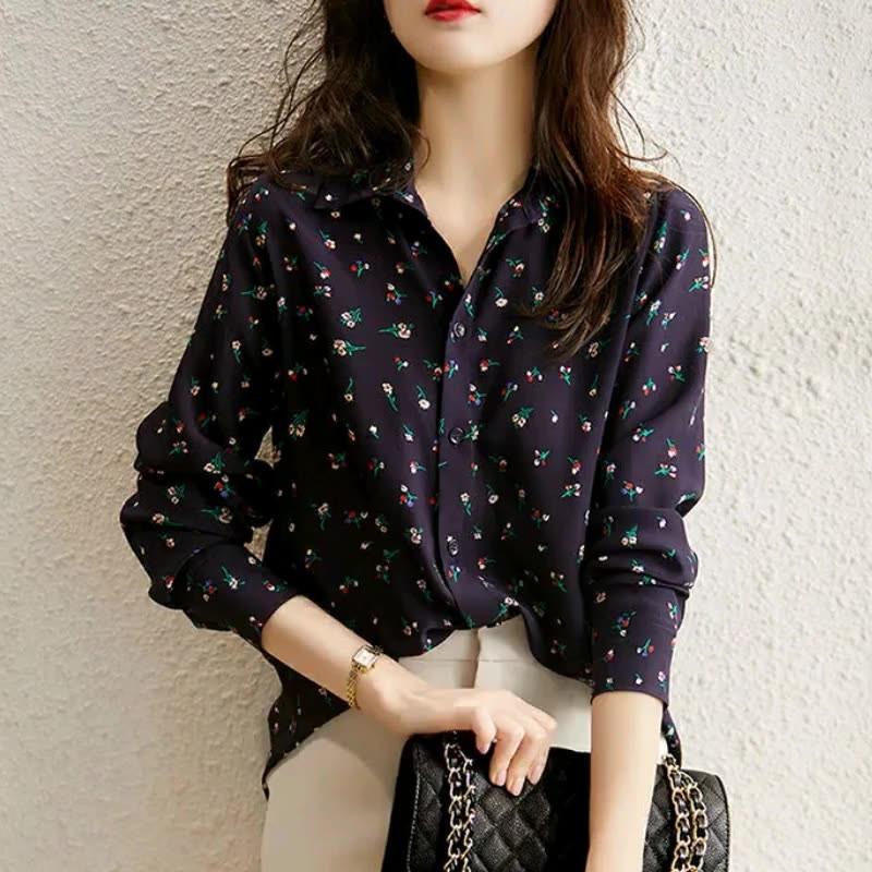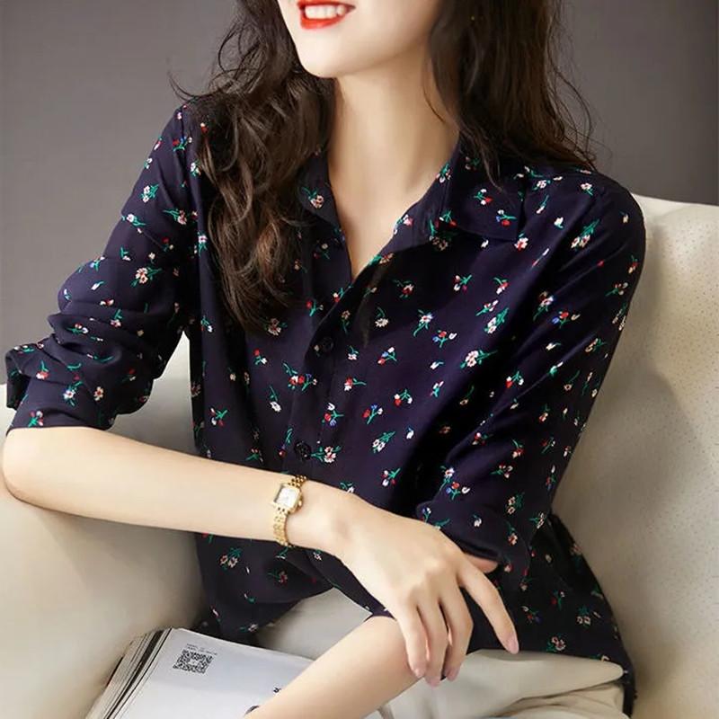 Весенне-осенняя рубашка с длинными рукавами и принтом, повседневная рубашка в стиле ретро с цветочным принтом, корейский модный топ