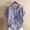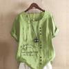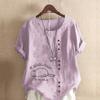 Женская мода с круглым вырезом и коротким рукавом, повседневная хлопковая льняная рубашка с рисунком, свободная летняя блузка с буквенным принтом для отдыха, топы больших размеров