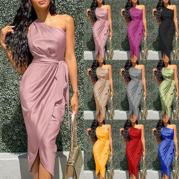 Женское облегающее платье со рюшами, асимметричное коктейльное платье миди без рукавов с запахом на одно плечо и атласным поясом — купить товар онлайн с бесплатной доставкой до всему миру!