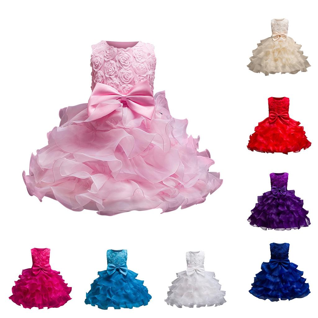 Детское платье Платье принцессы с бантом Однотонное платье для торта с блестками