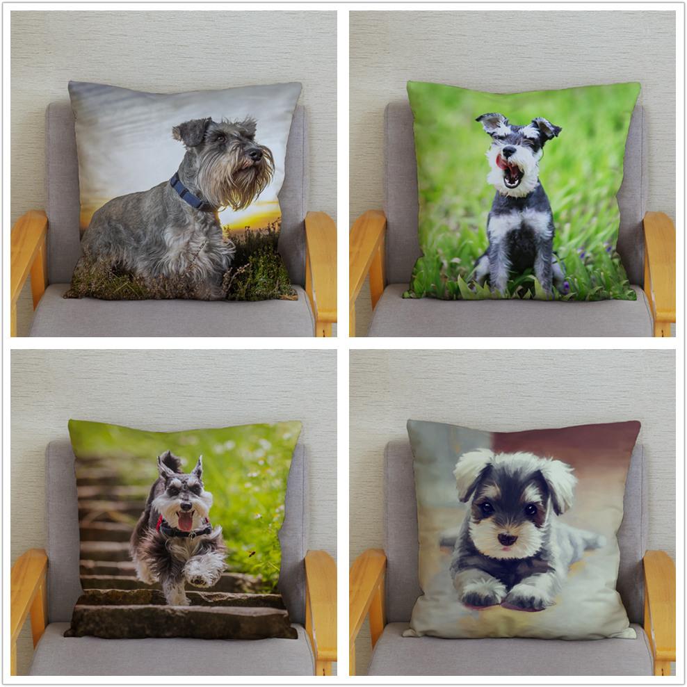 Наволочка для домашней спальни с милым принтом шнауцера, декор для подушки