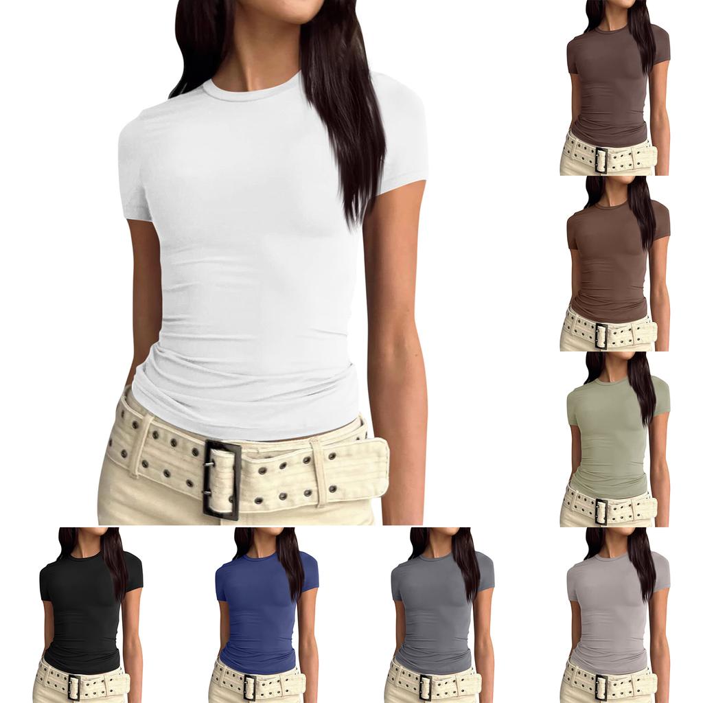 Женская однотонная сексуальная симпатичная футболка с коротким рукавом, облегающая облегающая футболка с укороченным топом