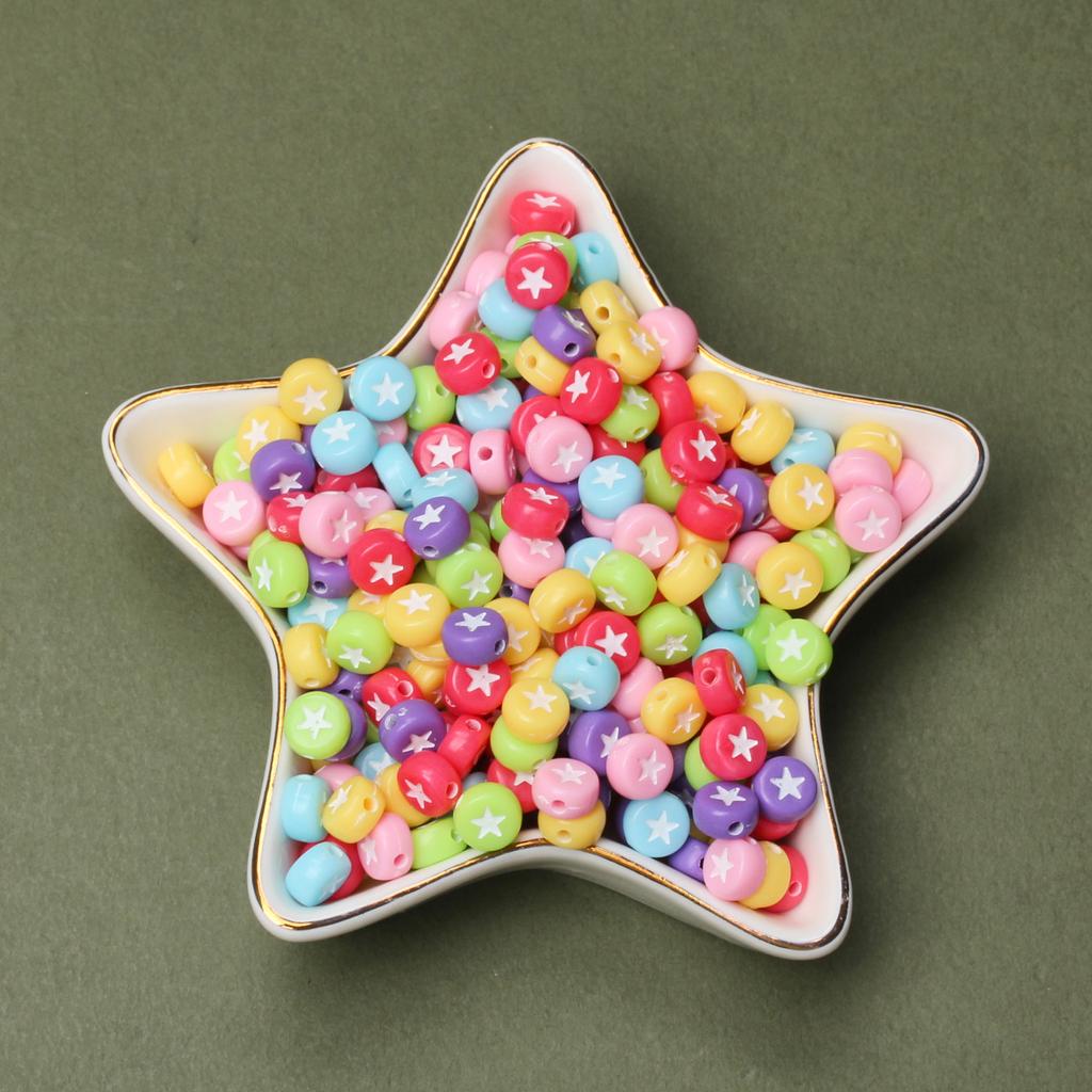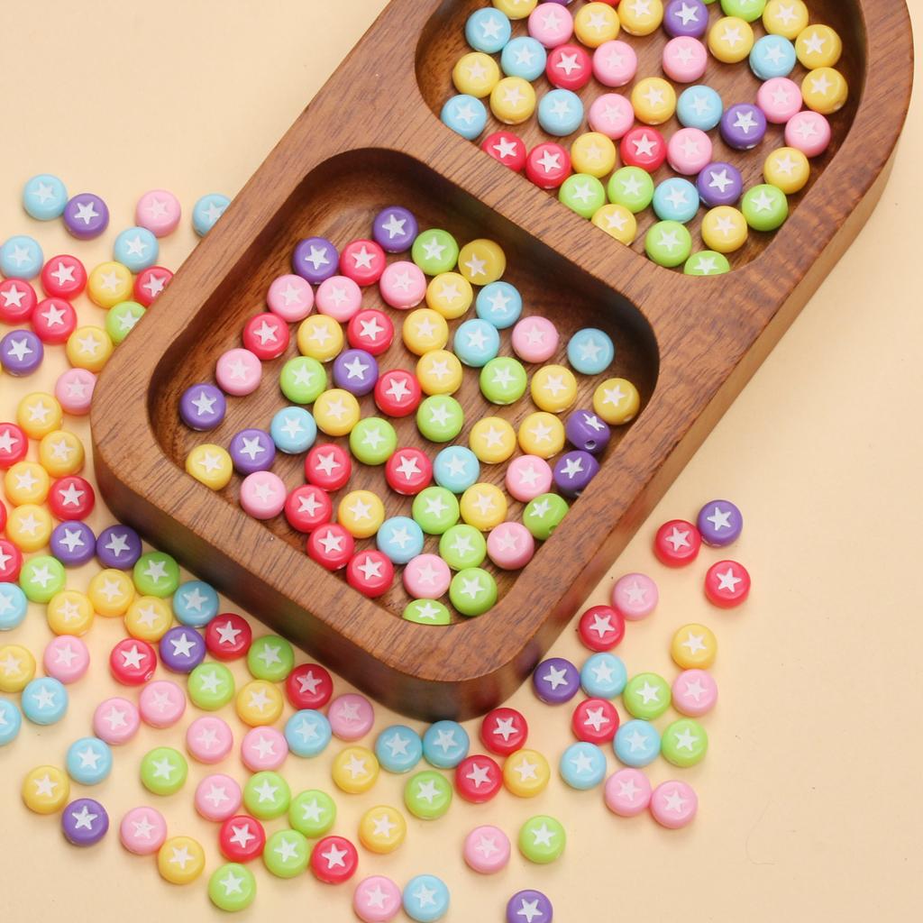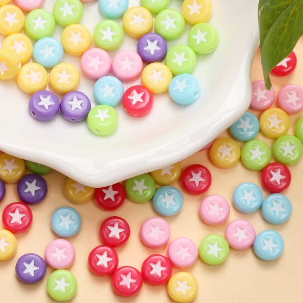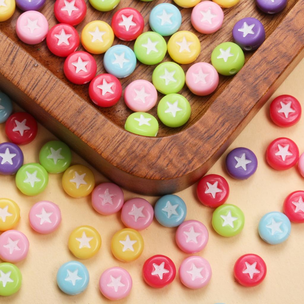 100 шт. 7 мм плоские круглые акриловые звездочки с узором милые модные свободные бусины для ювелирных изделий ручной работы браслет ожерелье ручной работы бисерные аксессуары
