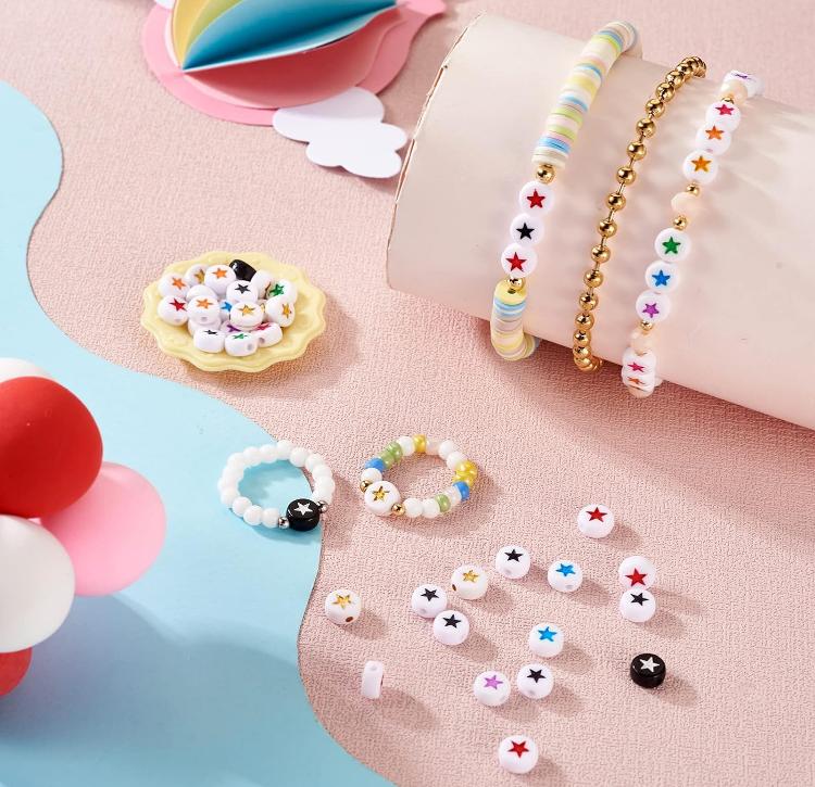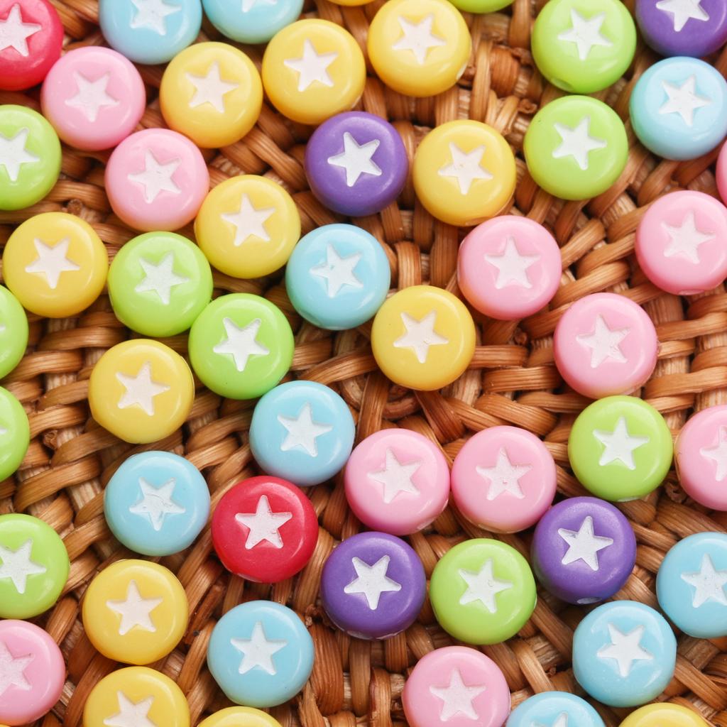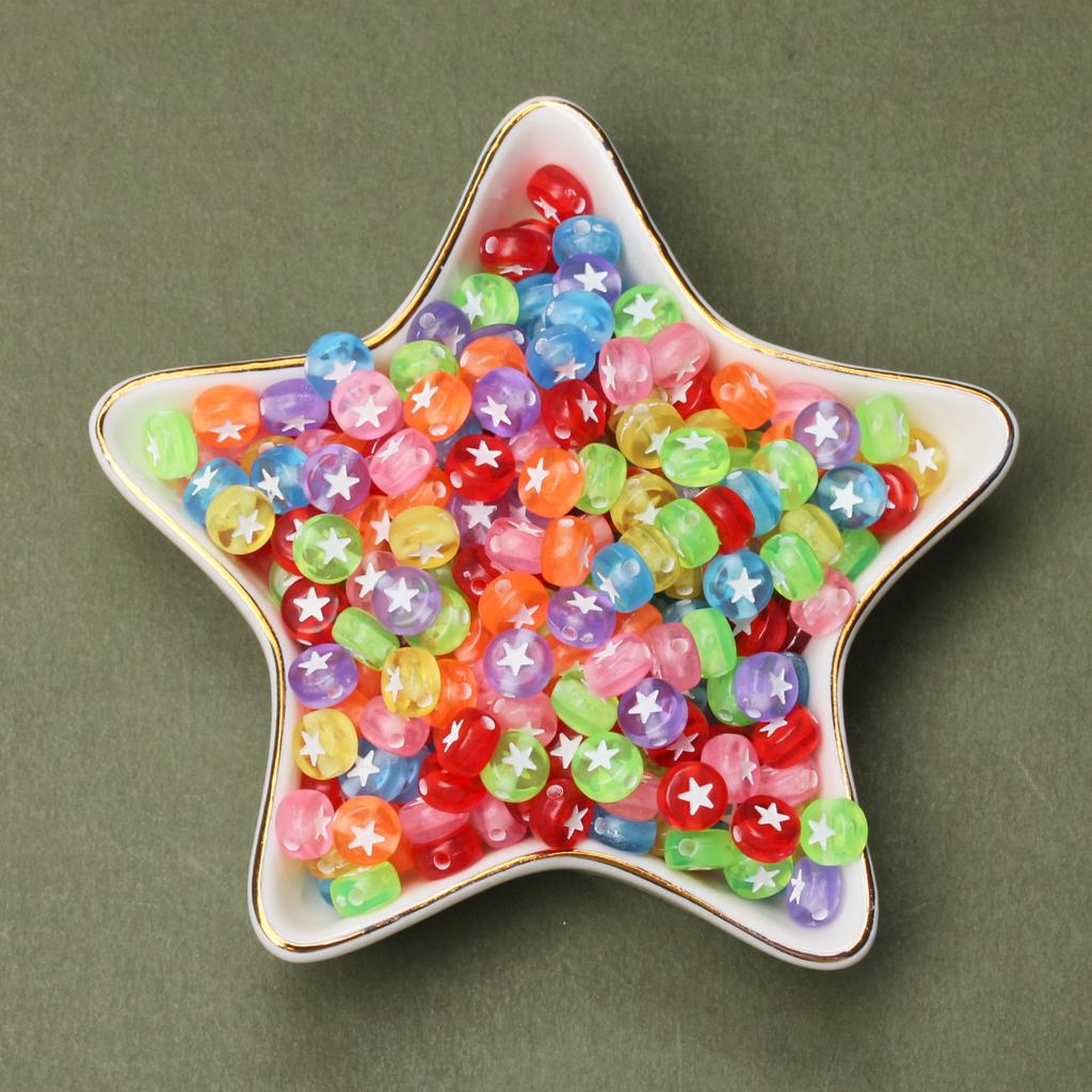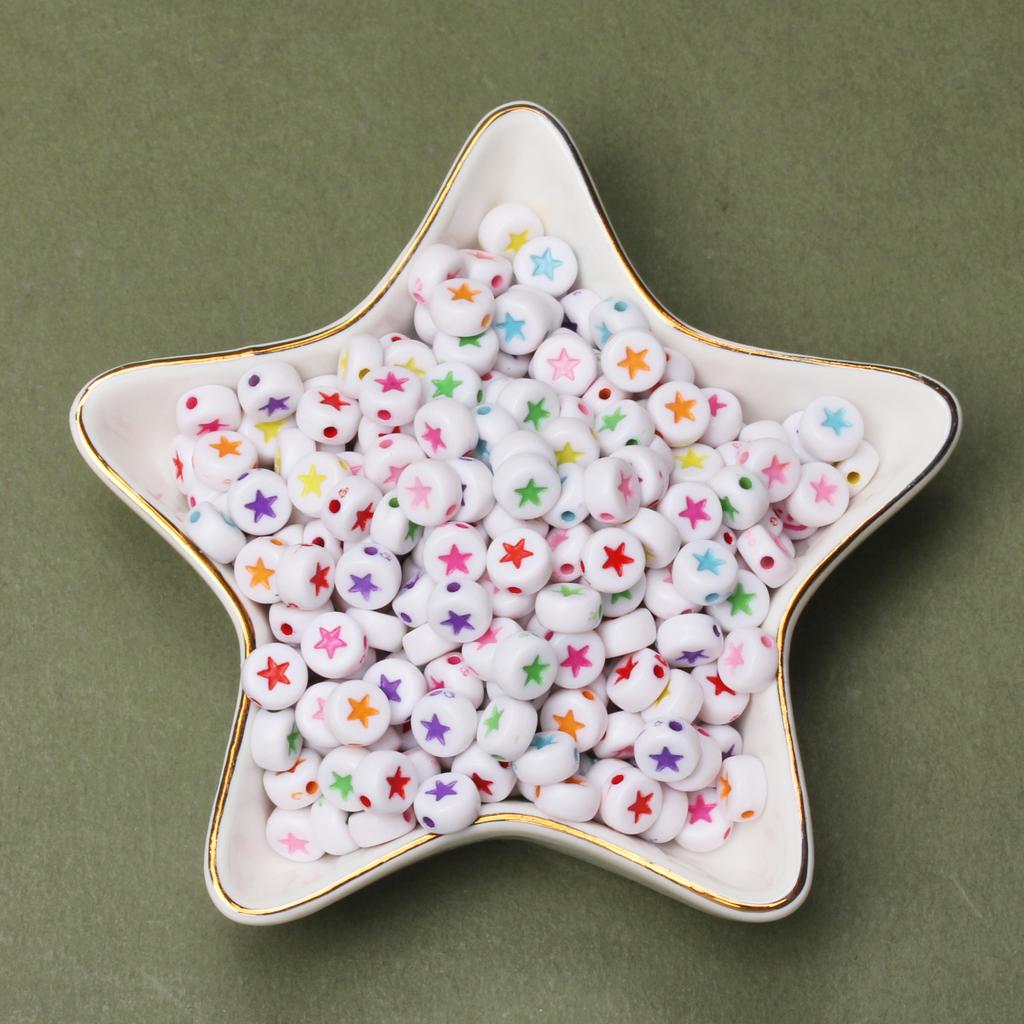 100 шт. 7 мм плоские круглые акриловые звездочки с узором милые модные свободные бусины для ювелирных изделий ручной работы браслет ожерелье ручной работы бисерные аксессуары