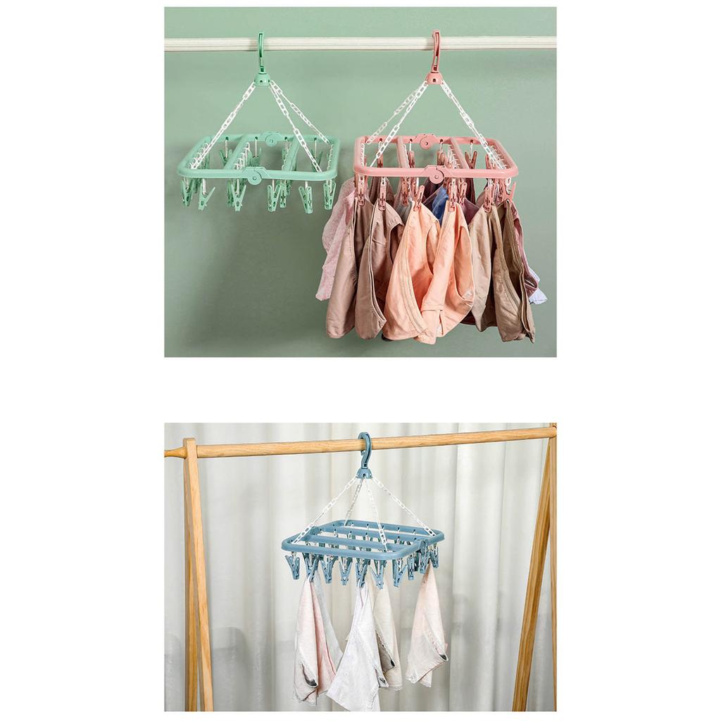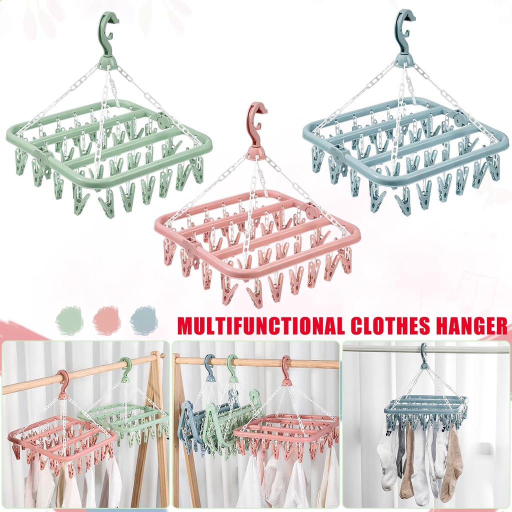 Вешалка с зажимами и каплями, складная вешалка для носков, вешалка для нижнего белья с 32 прищепками и ветрозащитным крючком, вешалка для сушки полотенец, бюстгальтеров, детской одежды