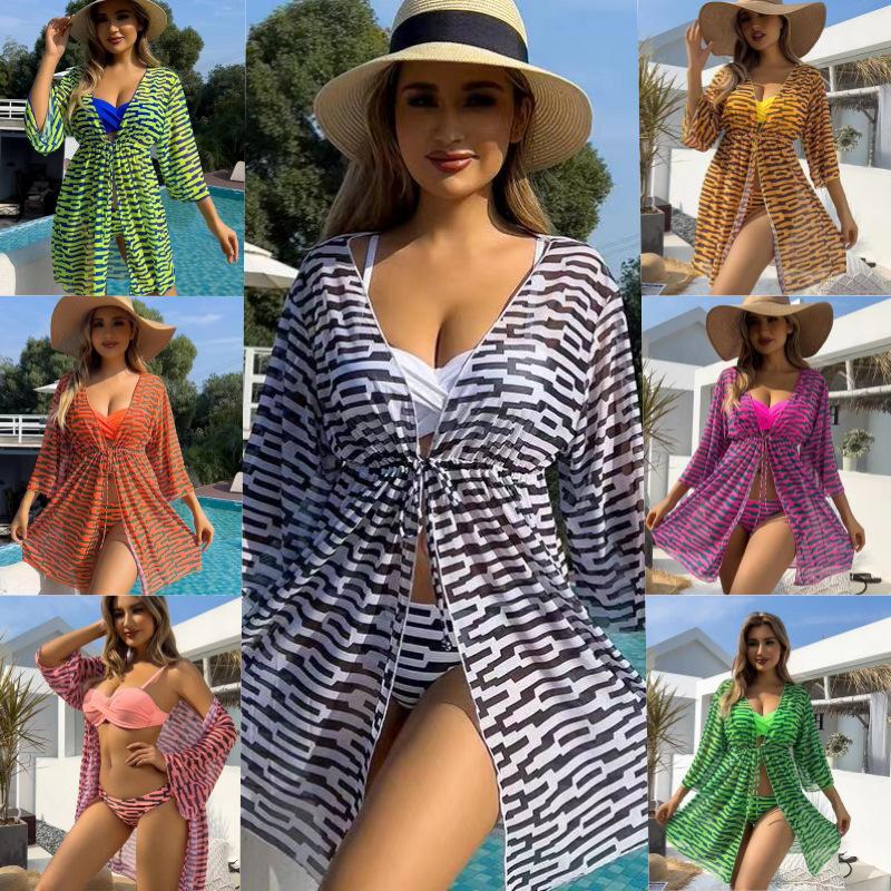 2024 Новая женская длинная рубашка с разрезом, пляжный купальник, европейская и американская внешняя торговля, новый купальник-бикини, комплект из трех предметов