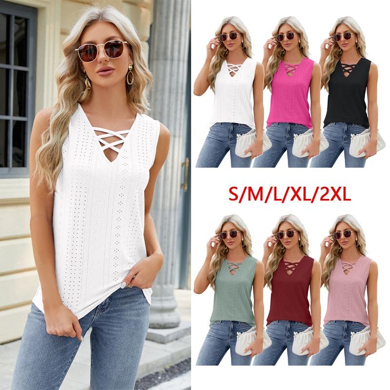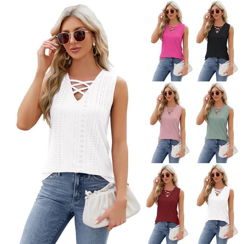 Летний женский жилет на подтяжках, модный однотонный жаккардовый сексуальный жилет без рукавов с v-образным вырезом на шнуровке и бюстгальтером внутри