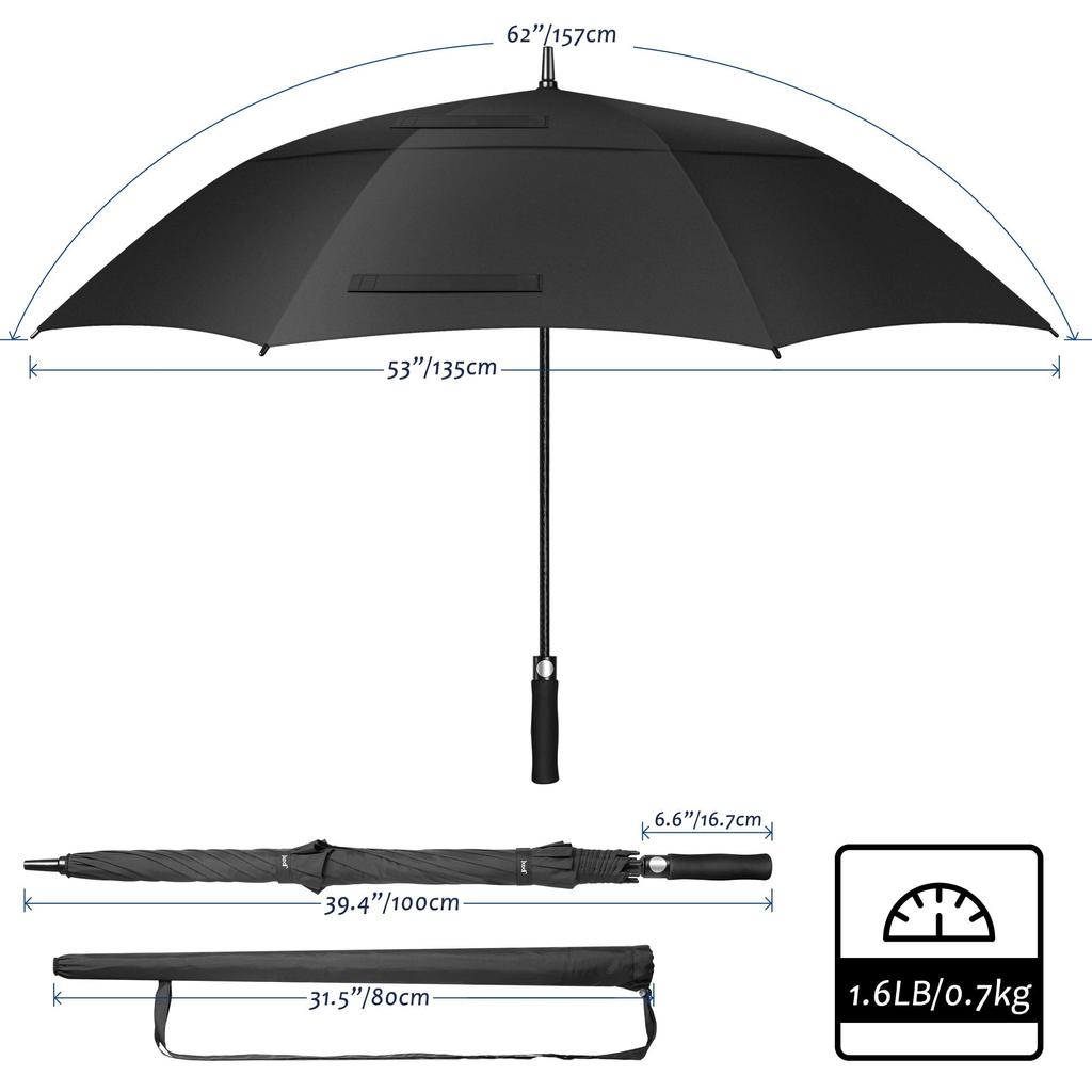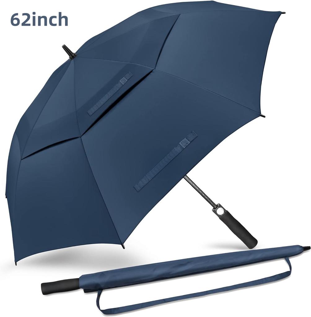 1 шт., автоматический открытый зонт для гольфа, очень большой двойной зонт с вентилируемым навесом, ветрозащитный водонепроницаемый зонт-палка для улицы, 62 дюйма