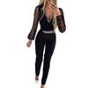 Женский комбинезон со стразами, прозрачная сетчатая цепочка с декором, облегающий длинный комбинезон с v-образным вырезом и высокой талией, однотонный деловой стильный длинный комбинезон